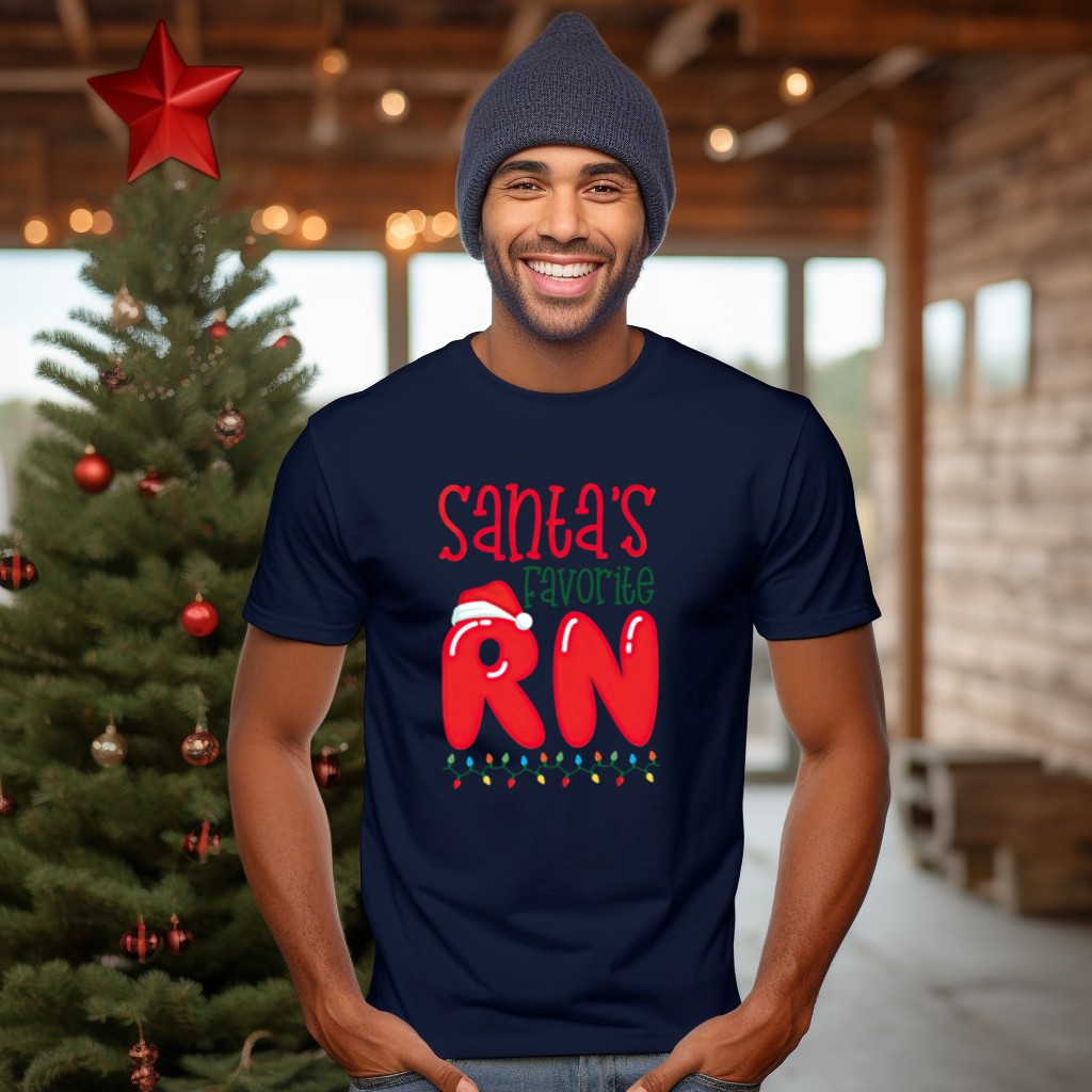 Celebrate the holiday season with a touch of humor in our Santa’s Favorite RN Funny Christmas Nurse T-Shirt! Perfect for nurses who want to showcase their festive spirit while maintaining a professional vibe, this shirt is ideal for casual wear, themed events, or daily shifts. The fan-made design, featuring illuminated holiday lights, adds a unique flair that sets you apart as the life of the party, whether you’re at a holiday gathering or spreading cheer at the hospital.