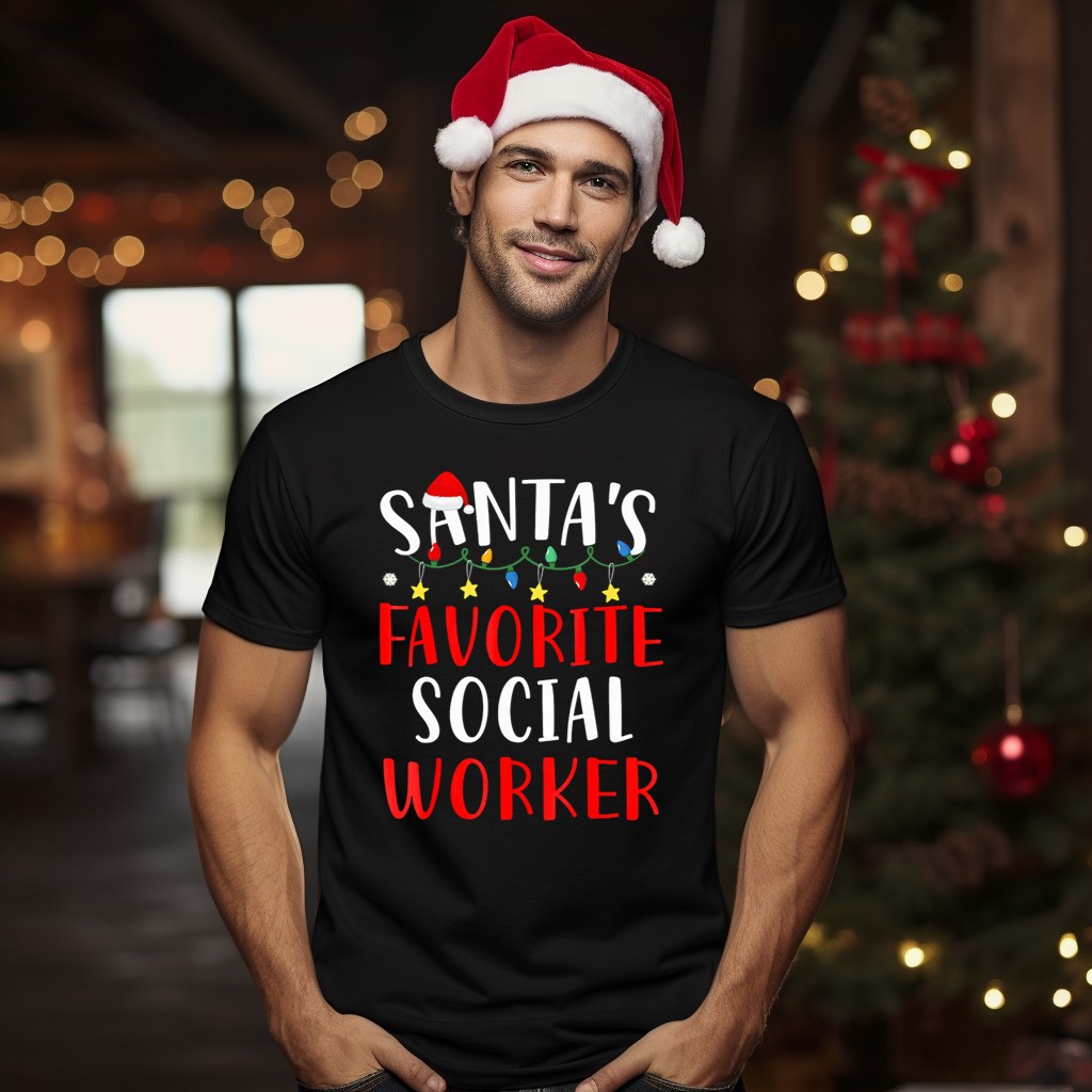 Celebrate the holiday spirit with our Santa’s Favorite Social Worker T-Shirt, designed for those who bring joy and kindness to the world. This festive tee features cheerful Christmas lights, snowflakes, and stars, making it the perfect choice for casual wear, themed events, or daily outings during the holiday season. Crafted with love and printed in the USA, it’s a unique way to showcase your passion for social work while embracing the magic of Christmas.