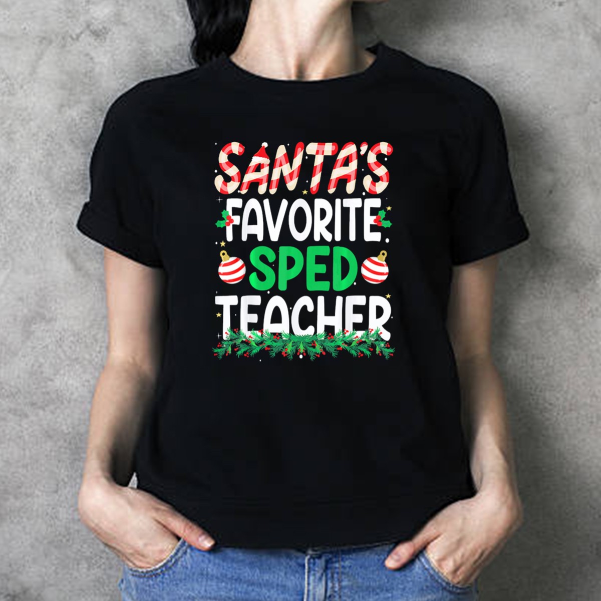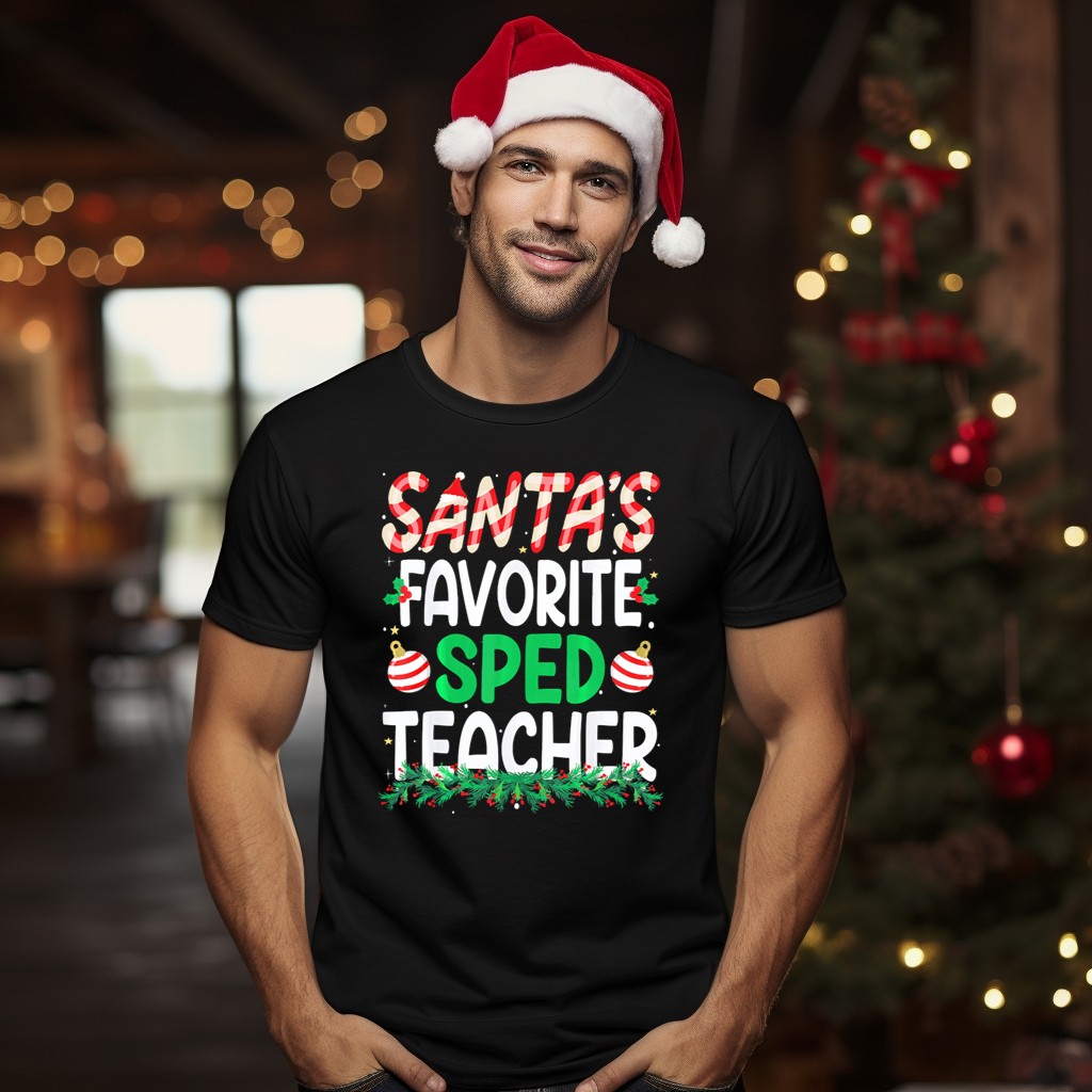 Celebrate the holiday spirit with our “Santa’s Favorite Sped Teacher” graphic T-shirt, perfect for dedicated educators who make a difference every day! This fan-made design showcases your passion for teaching while adding a touch of festive cheer. Ideal for casual wear at school, themed events, or daily outings during the holiday season, this shirt is a must-have for every special education teacher looking to spread joy and holiday magic.