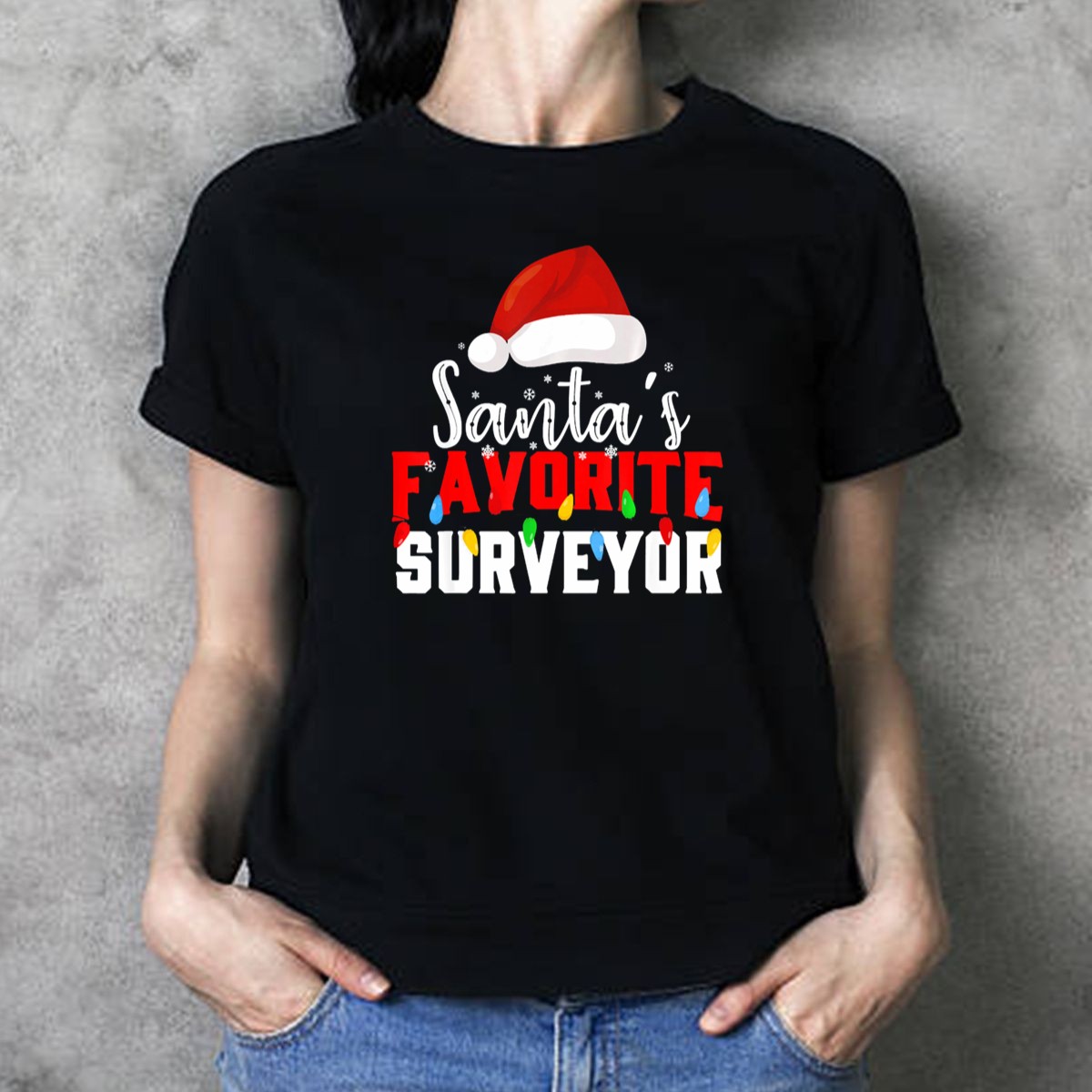 Be the first to review “Santas Favorite Surveyor Christmas Lights Santa Hat Snowflakes T Shirt”