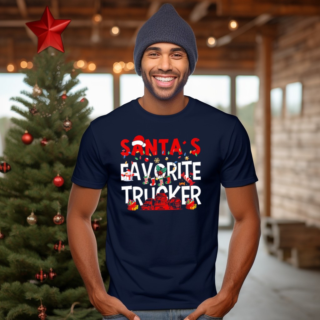 Celebrate the holiday spirit with our Santa’s Favorite Trucker Christmas Lights T-Shirt, perfect for truck enthusiasts and festive fanatics alike! This comfortable and stylish tee is designed for casual wear, themed events, or daily outings during the festive season. Its unique fan-made design showcases your love for all things Christmas and trucking, making it a standout piece for family gatherings, holiday parties, or just spreading cheer wherever you go. Printed in the USA, this shirt combines fun and comfort in one delightful package.