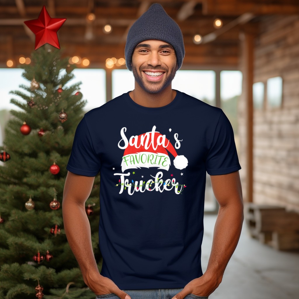 Celebrate the holiday season in style with our “Santa’s Favorite Trucker” Merry Christmas T-Shirt! Perfect for truck enthusiasts and festive spirits alike, this shirt adds a playful flair to your casual wear. Whether you’re attending a themed event, gathering with friends, or simply spreading holiday cheer, this fan-made design, proudly printed in the USA, is sure to make you the center of attention.