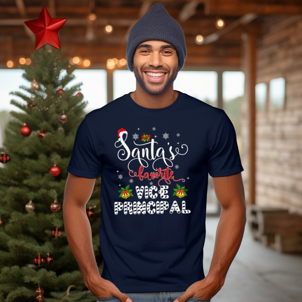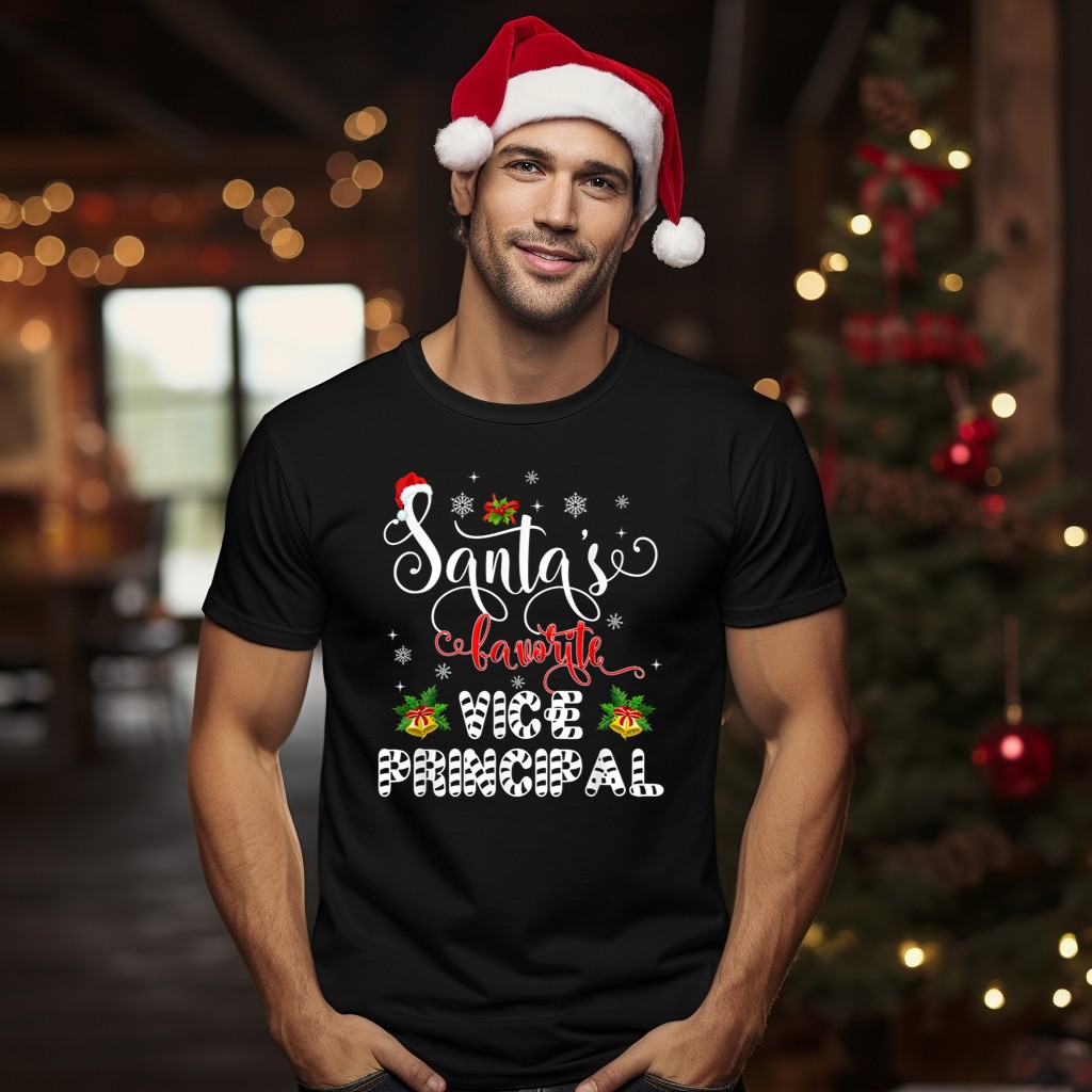 Celebrate the holiday spirit with our Santa’s Favorite Vice Principal T-Shirt, perfect for educators and festive fans alike! This playful design features charming snowflakes and bells, making it an ideal choice for casual wear during themed events, holiday parties, or simply spreading cheer throughout the school. Crafted for comfort and style, this shirt is not just a festive statement; it’s a cozy addition to your all-season wardrobe!