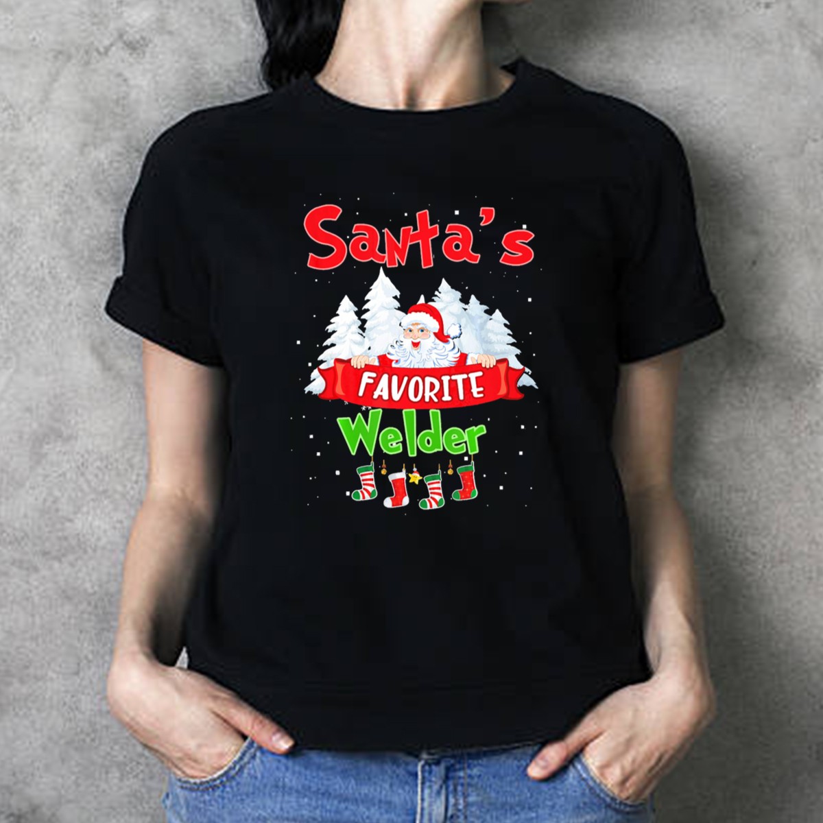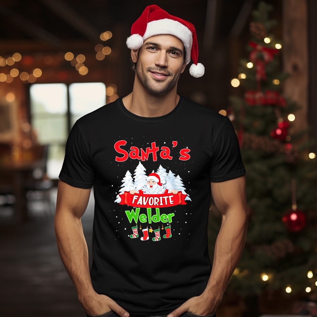 Celebrate the festive season with our “Santa’s Favorite Welder” T-shirt, a perfect blend of holiday cheer and pride for welders everywhere! Featuring a charming design of Santa Claus surrounded by snowy trees, this shirt is ideal for casual wear, themed events, or simply spreading holiday joy. Made for those who love to showcase their profession with a fun twist, this fan-made graphic is printed in the USA, making it a unique addition to your holiday wardrobe.
