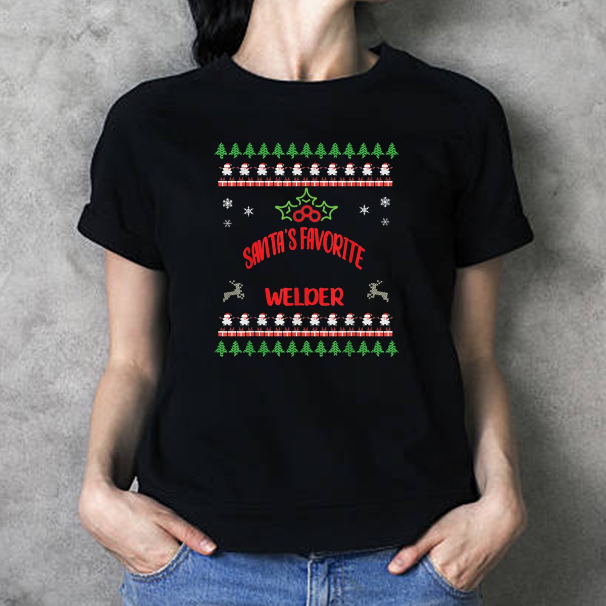 Celebrate the holiday season with a touch of humor in our Santa’s Favorite Welder Holiday Design Ugly Christmas T-Shirt. Perfect for welders, tradespeople, or anyone who appreciates a good laugh during festive gatherings, this shirt is ideal for casual wear, themed events, or simply spreading some cheer during the holidays. Made with a fan-made design and printed in the USA, it combines comfort and style for all your seasonal festivities.