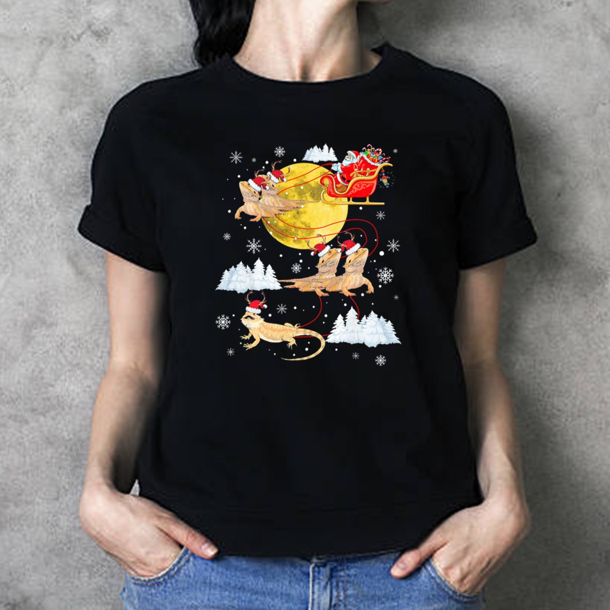 Celebrate the holiday season with our Santa’s Sleigh Bearded Dragon Christmas Moon Snowflakes T-Shirt! Perfect for reptile enthusiasts and Christmas lovers alike, this unique fan-made design brings a whimsical twist to your festive wardrobe. Whether you’re heading to a themed event, casual get-together, or simply enjoying a cozy day at home, this all-season tee is sure to spark joy and conversation!
