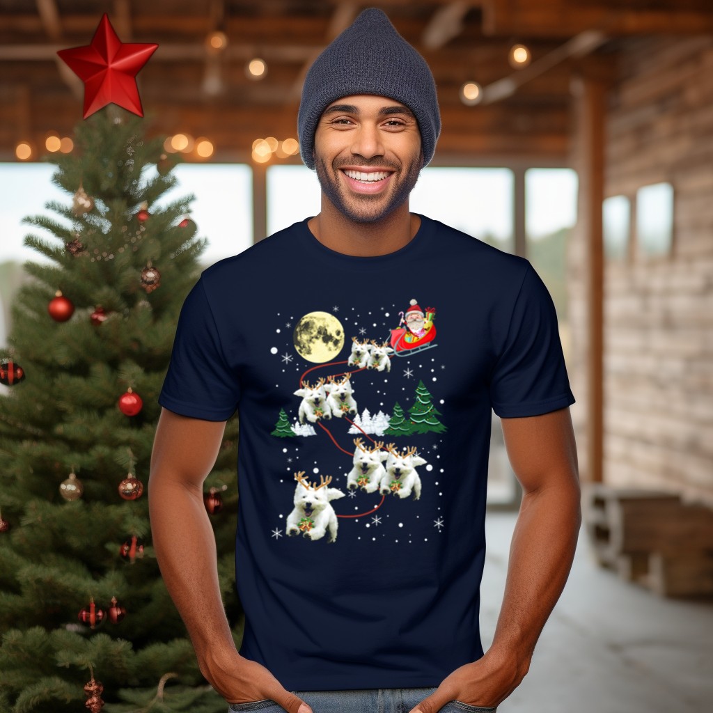 Celebrate the joy of the holiday season with our Santa’s Sleigh Pulled By Funny Westie Puppies Under Moonlit Christmas Sky T-Shirt! Perfect for dog lovers and festive spirits alike, this fan-made design brings a whimsical touch to your casual wear. Whether you’re attending themed events, enjoying daily outings, or simply spreading cheer, this shirt is a delightful addition to your wardrobe. Crafted for comfort and style, it’s sure to be a conversation starter at every holiday gathering!