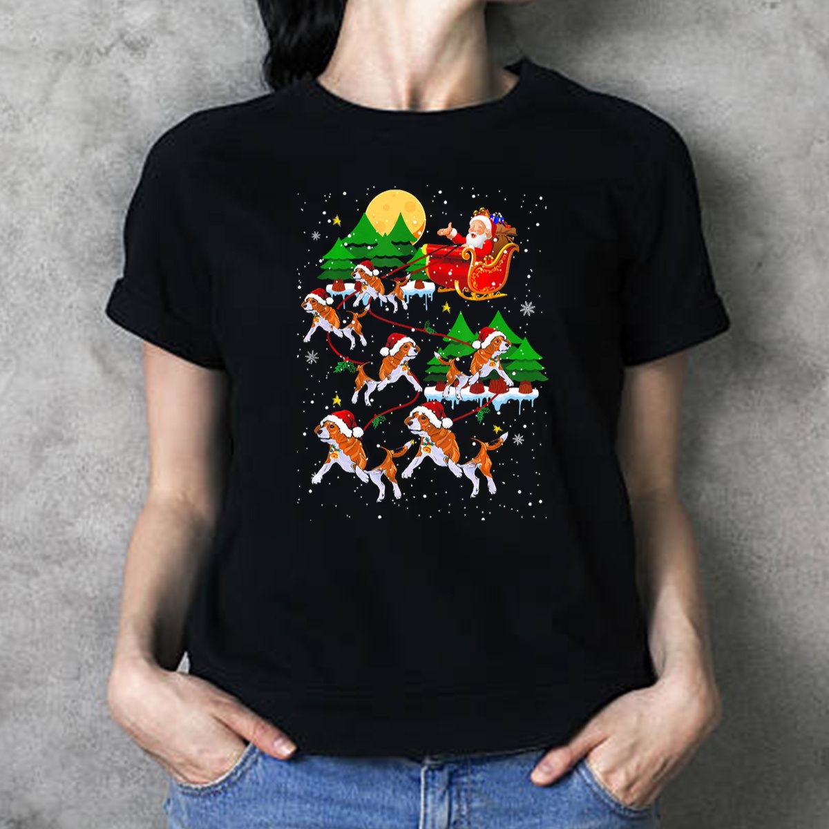 Be the first to review “Santas Sleigh With Beagle Reindeer And Snowy Christmas Night T Shirt”
