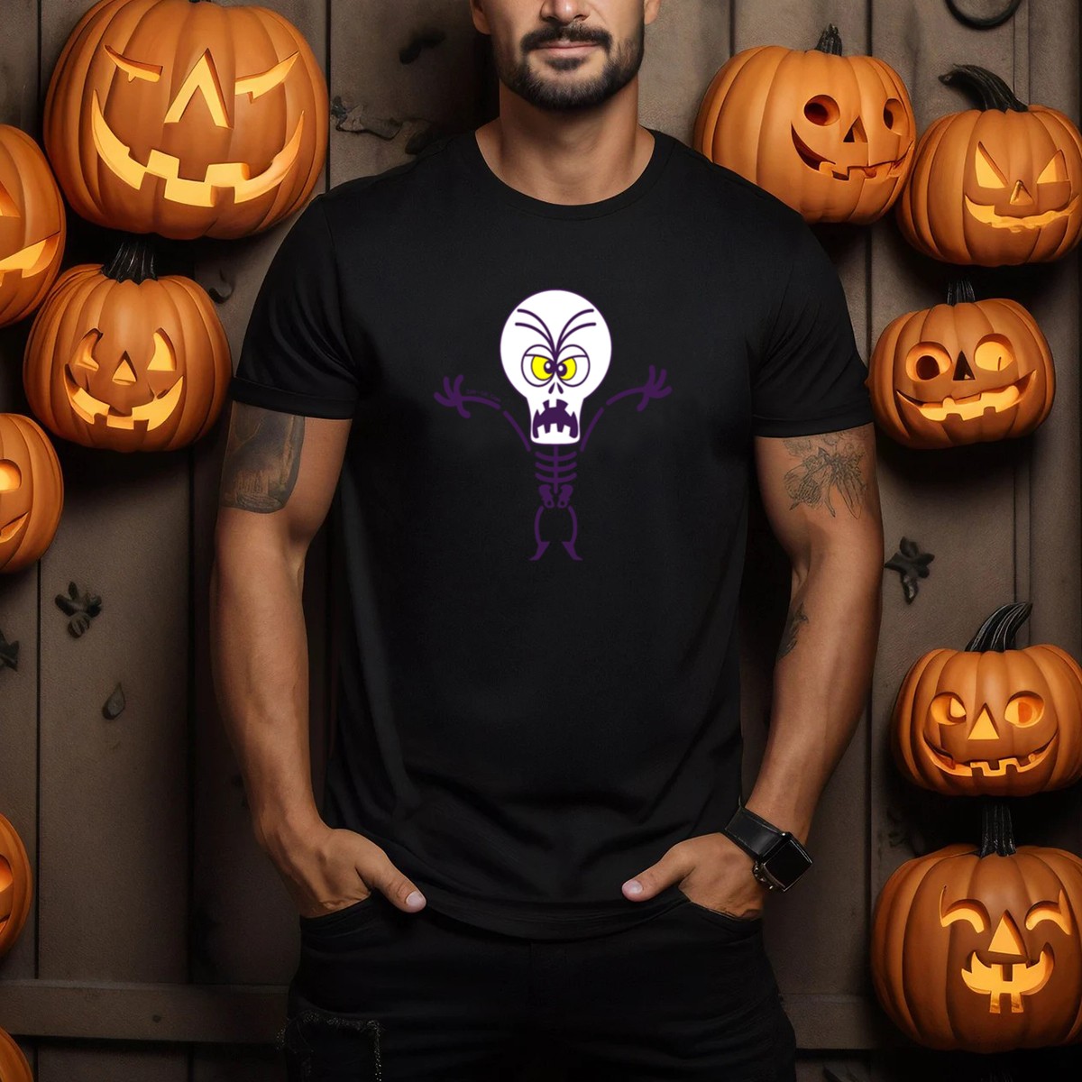Get ready to spook up your wardrobe with our Scary Halloween Cartoon Skeleton With Angry Eyes T-Shirt! Perfect for Halloween enthusiasts and anyone who loves to embrace the festive spirit, this shirt is an ideal choice for casual outings, themed events, or simply showcasing your love for all things spooky. Made with a fan-made design printed in the USA, it combines comfort and style, allowing you to express your unique personality while staying cozy throughout the season.