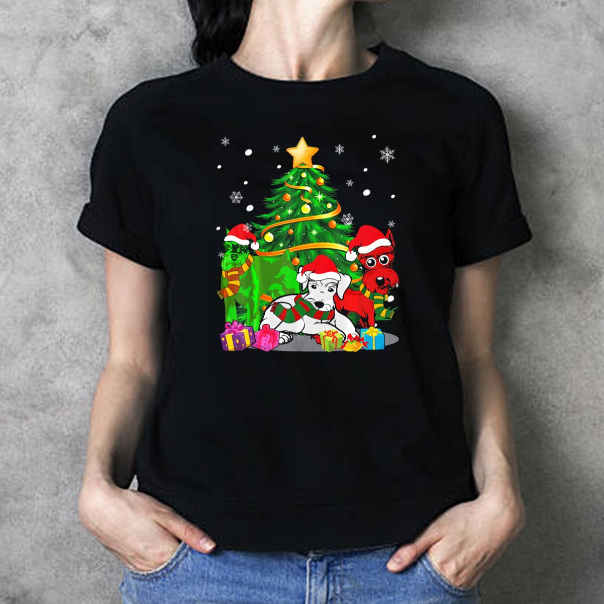 Celebrate the joyous spirit of the holiday season with our Schnauzer Family Christmas Time T-Shirt! This fan-made design features adorable Schnauzers surrounded by a festive tree and gifts, making it the perfect choice for dog lovers and families alike. Whether you’re attending a holiday gathering, a themed event, or just enjoying a casual day out, this shirt adds a touch of festive cheer to your wardrobe. Made with comfort in mind, it’s a delightful way to showcase your love for Schnauzers during the most wonderful time of the year.