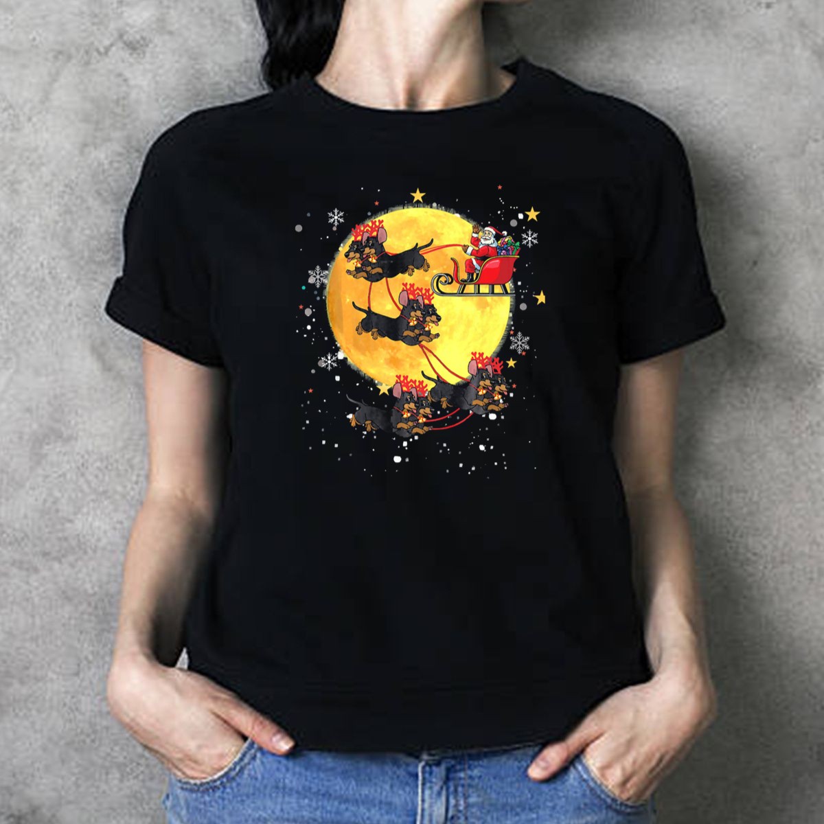 Celebrate the festive season in style with our Schnauzer Reindeer Santa Sleigh Christmas Moon Snowflakes T-Shirt! Perfect for dog lovers and holiday enthusiasts alike, this whimsical tee adds a playful touch to your casual wear. Ideal for themed events, family gatherings, or simply spreading Christmas cheer, this shirt showcases a unique fan-made design printed right here in the USA, ensuring you stand out during the holiday festivities.