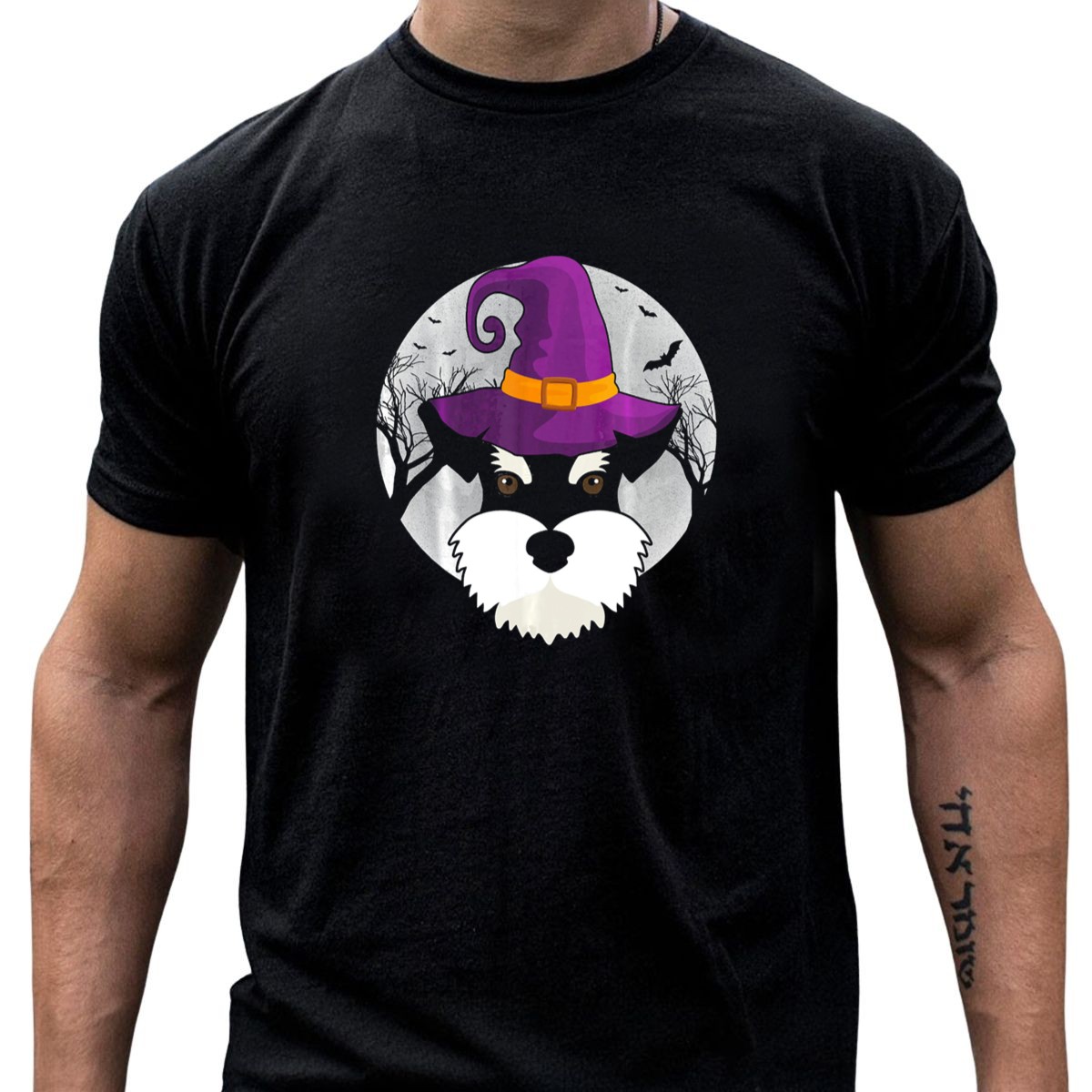 Be the first to review “Schnauzer Witch Halloween Dog Love With Purple Hat And Bats T-Shirt”