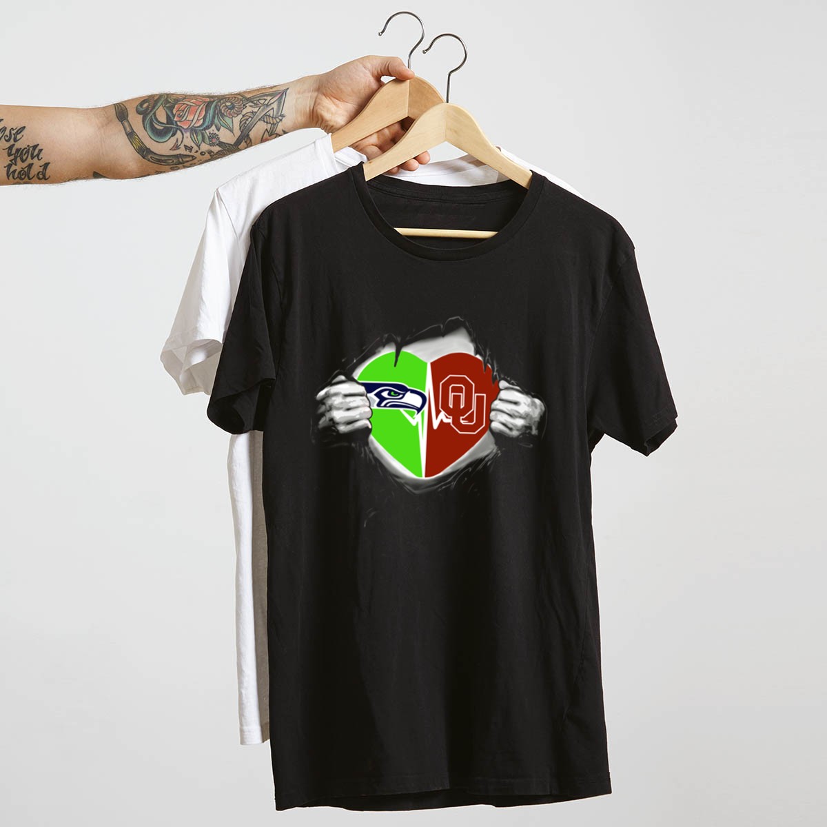 Be the first to review “Seahawks Oklahoma Sooners Heart Logo With Torn T-Shirt”