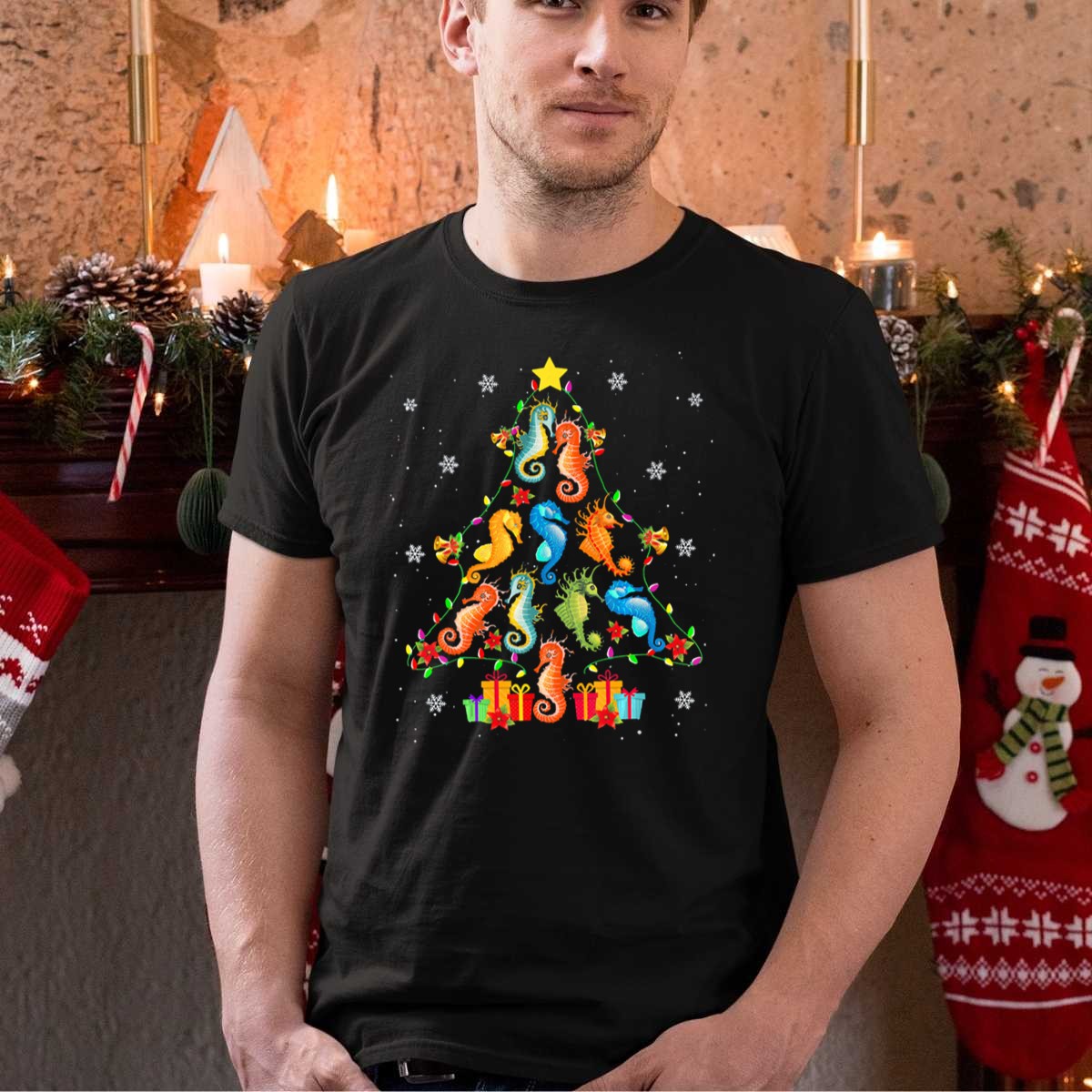 Seahorse Christmas Tree Snowflakes Presents Lights Holiday Mix T Shirt