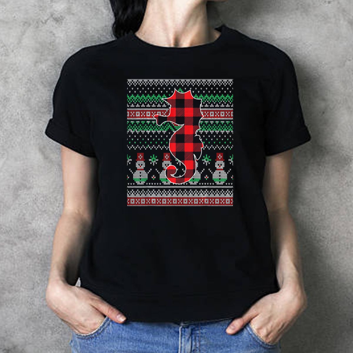 Embrace the festive spirit with our Seahorse Red Plaid Christmas Snowman Pattern Funny Match T-Shirt! Perfect for anyone who loves to celebrate the holiday season with a touch of humor, this shirt is ideal for casual wear, themed events, or just spreading joy during daily activities. Crafted with a unique fan-made design printed in the USA, it’s not just a shirt; it’s a conversation starter that showcases your fun personality and love for the holidays!