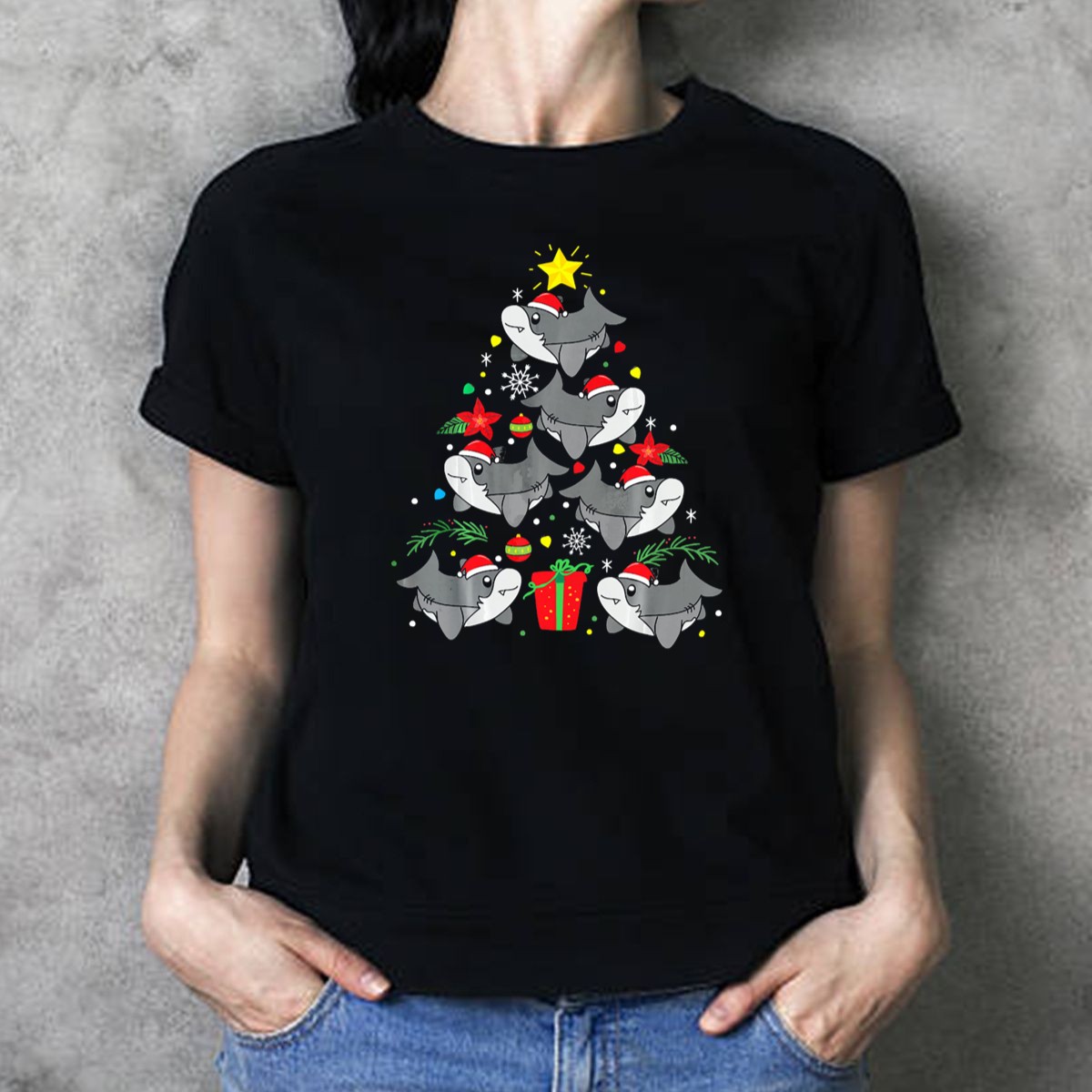 Celebrate the holiday season with our Shark Christmas Tree T-Shirt, featuring a whimsical design of sharks wearing Santa hats and surrounded by colorful ornaments! Perfect for ocean lovers and holiday enthusiasts alike, this fan-made tee adds a splash of fun to any casual outfit. Whether you’re attending a themed event, decorating your home, or just enjoying a laid-back day, this shirt is sure to bring smiles and festive cheer!