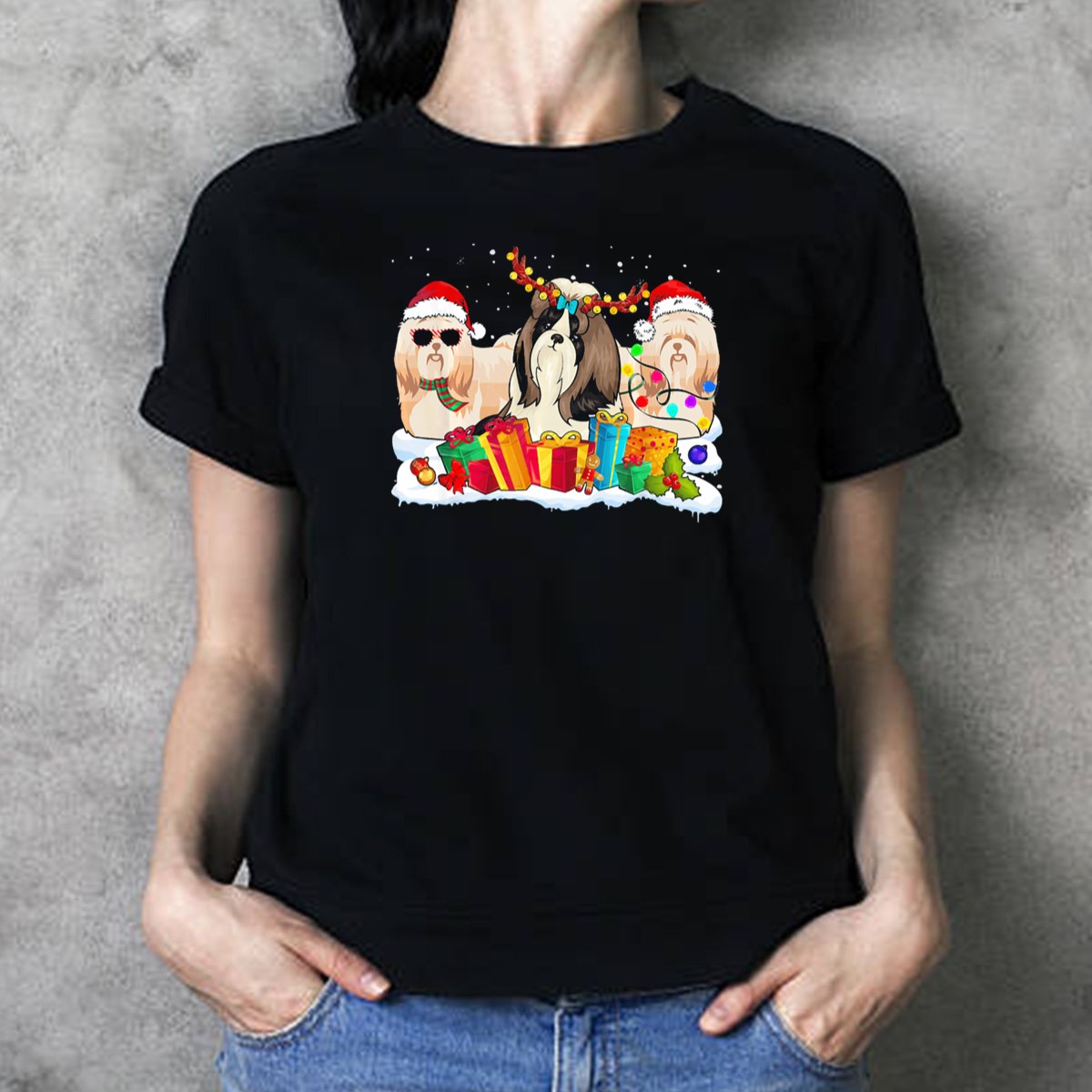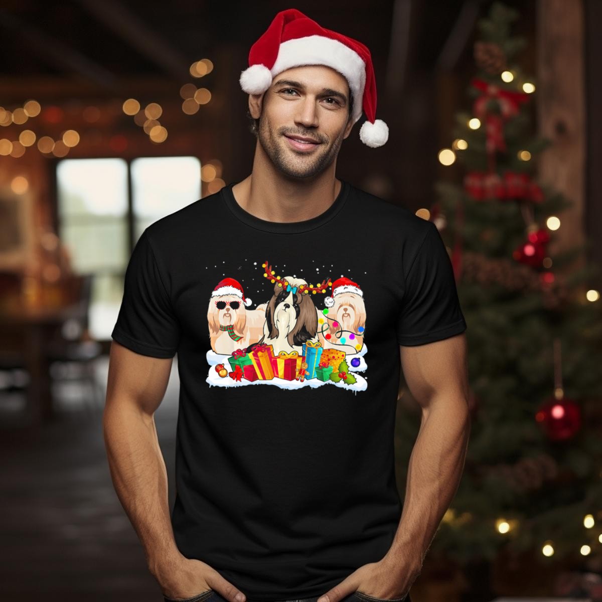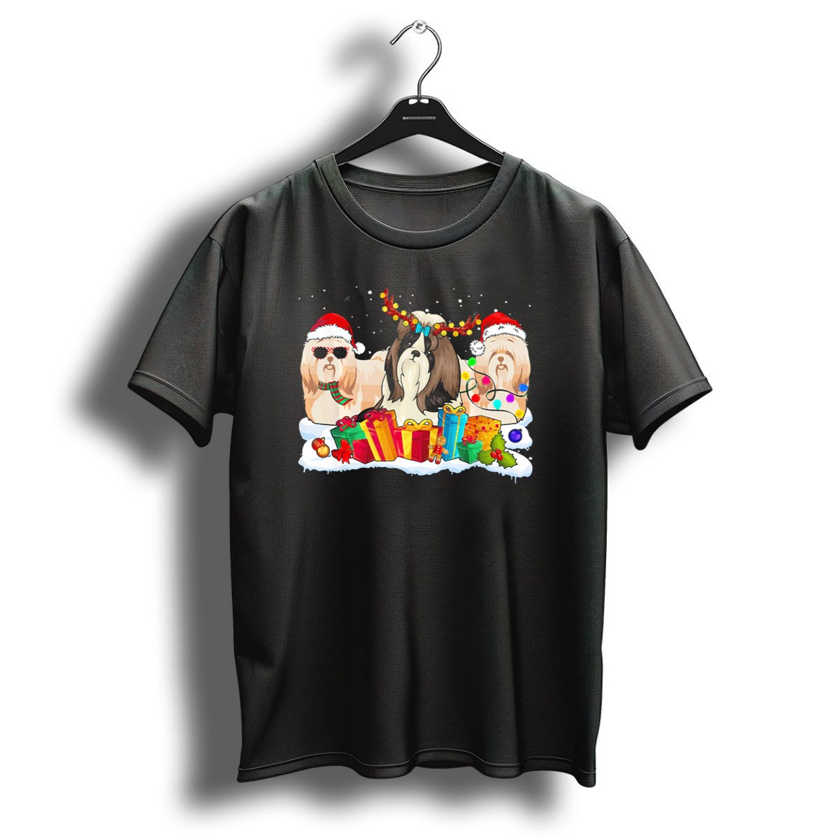 Celebrate the holiday season in style with our Shih Tzu Christmas Santa Hat Reindeer Antlers Gifts And Lights T-Shirt! This delightful graphic tee is perfect for dog lovers and anyone who enjoys festive fun. Whether you’re attending a themed event, gathering with family, or simply embracing the holiday spirit in your daily wear, this shirt will surely bring smiles and joy. Made for comfort and designed with a fan-made print, it’s a unique addition to your all-season wardrobe that showcases your love for Shih Tzus and Christmas cheer.