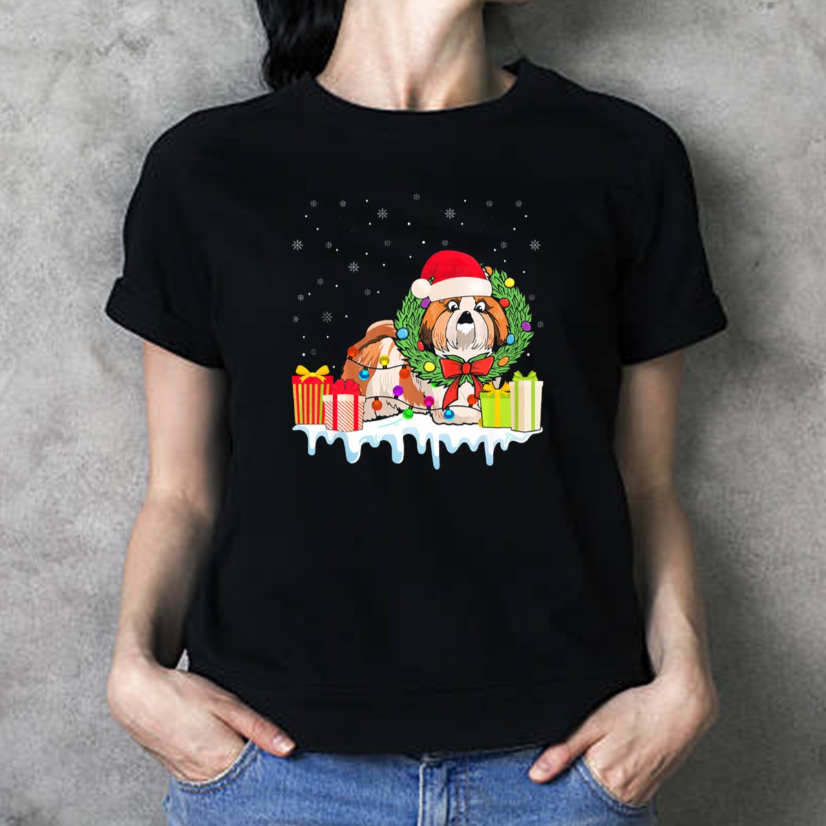 Celebrate the festive season with our Shih Tzu Christmas Santa Hat Wreath T-Shirt, perfect for dog lovers and holiday enthusiasts alike! This charming design features adorable snowflakes and a playful Shih Tzu wearing a Santa hat, making it an ideal choice for casual wear, themed events, or simply spreading holiday cheer. Crafted with comfort in mind, this shirt is not only a fun way to showcase your love for your furry friend but also a versatile addition to your all-season wardrobe.