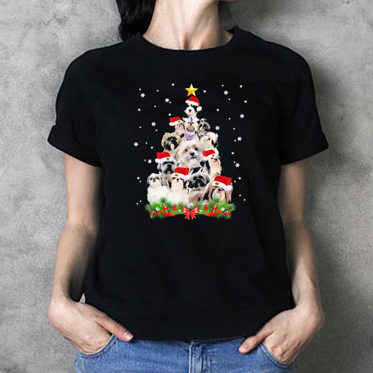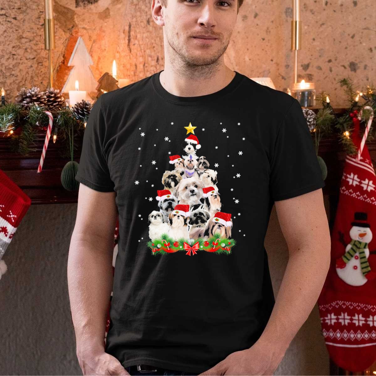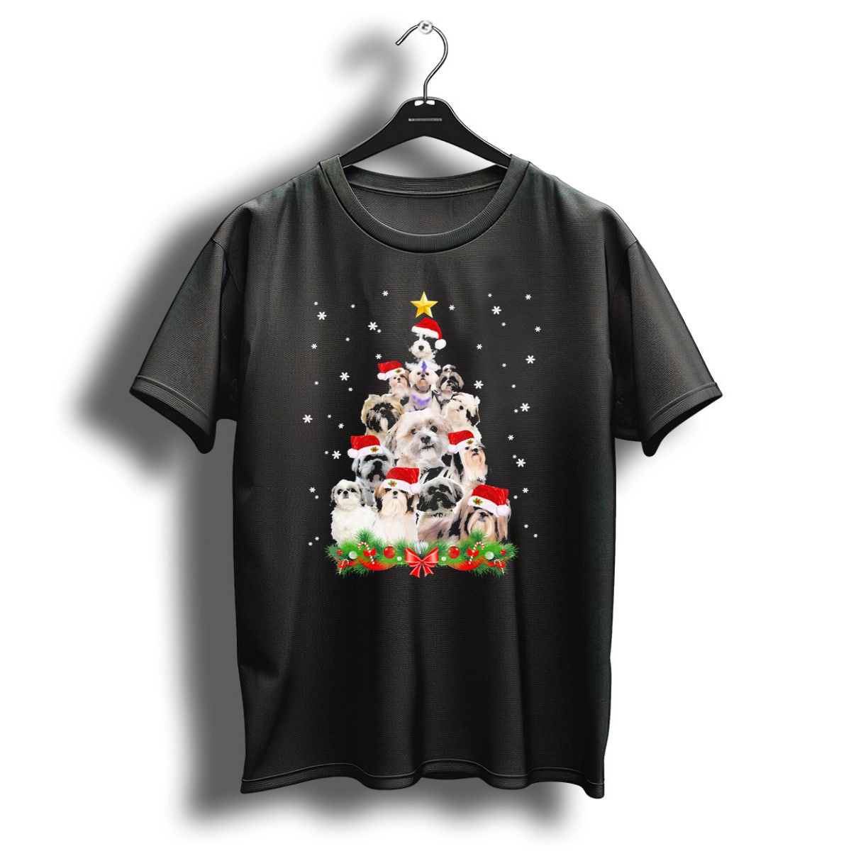 Be the first to review “Shih Tzu Christmas Tree With Santa Hats And Snowflakes T Shirt”