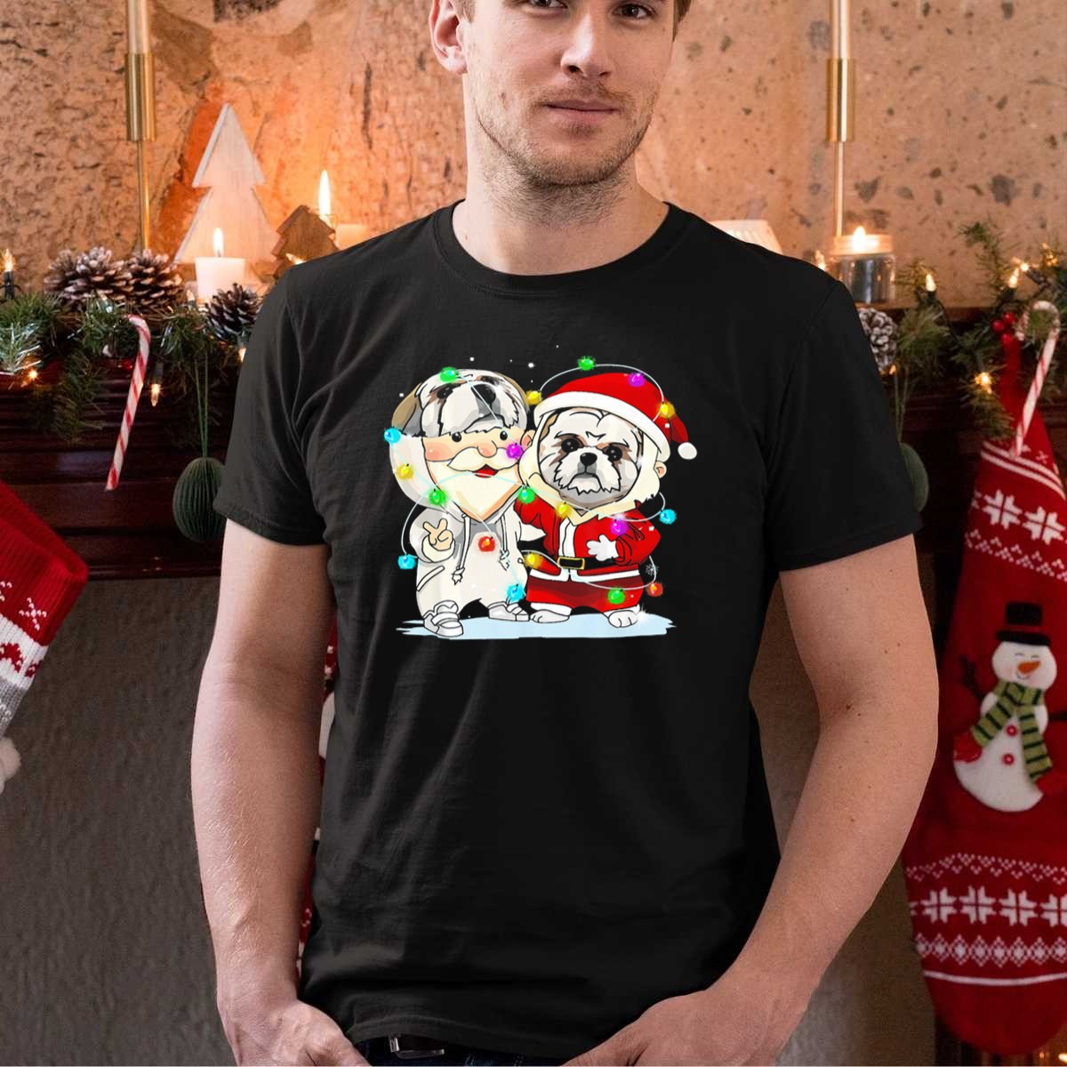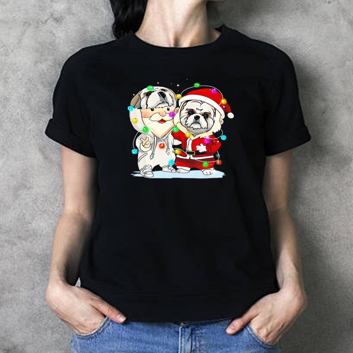 Shih Tzu Duo In Santa Outfit With Christmas Lights T Shirt