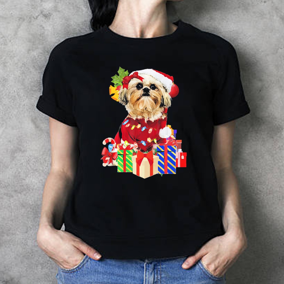 Be the first to review “Shih Tzu Santa Hat Christmas Lights And Presents T-Shirt”
