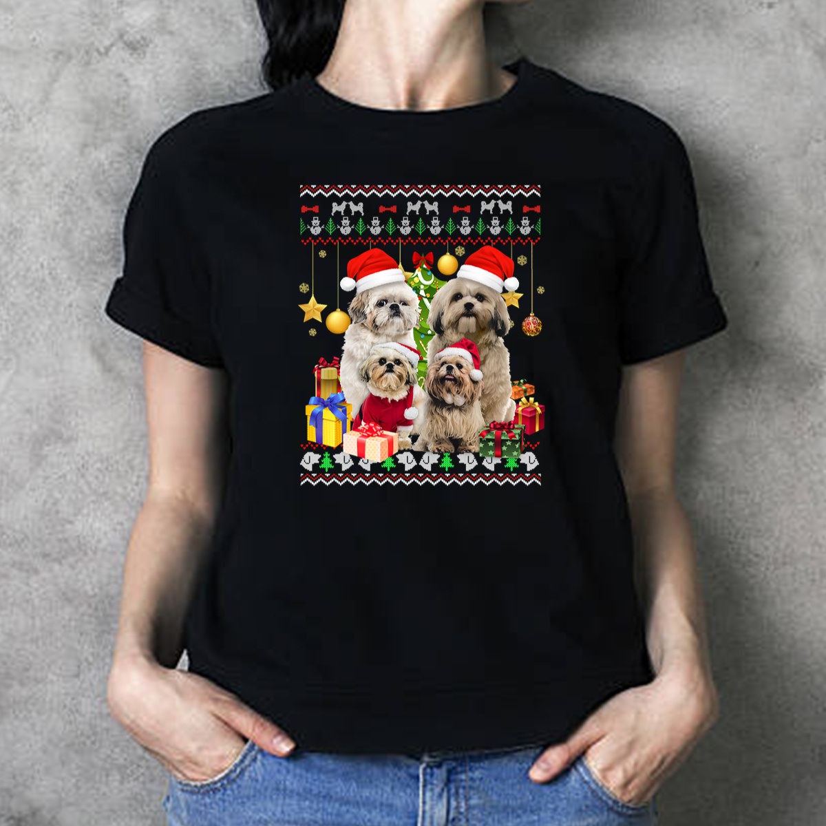 Be the first to review “Shih Tzu Santa Hat Christmas Sweater Puppies And Presents T Shirt”