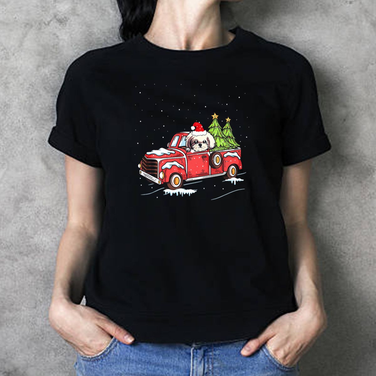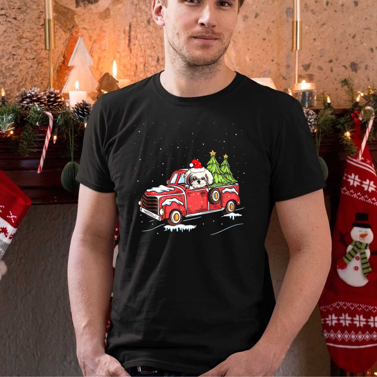 Celebrate the festive season with our charming Shih Tzu Santa Hat Christmas Trees In Red Truck Snow Scene T-Shirt! Perfect for dog lovers and holiday enthusiasts alike, this delightful tee is ideal for casual wear, themed events, or simply spreading cheer during the holidays. Crafted with care and printed in the USA, this unique fan-made design is sure to bring smiles and warmth to your winter wardrobe.