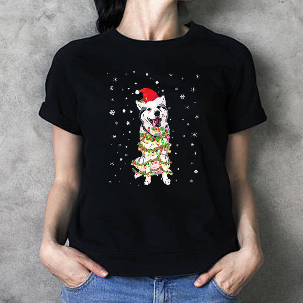 Celebrate the festive season in style with our Siberian Husky Christmas Lights Santa Hat Snowflakes T-Shirt! Perfect for dog lovers and holiday enthusiasts alike, this playful tee showcases a charming design that captures the spirit of Christmas and the joy of your favorite furry friend. Whether you’re attending a holiday party, decorating the tree, or simply enjoying a cozy day at home, this shirt adds a touch of whimsy to your casual wear. Made for comfort and crafted in the USA, it’s a must-have for every festive wardrobe.