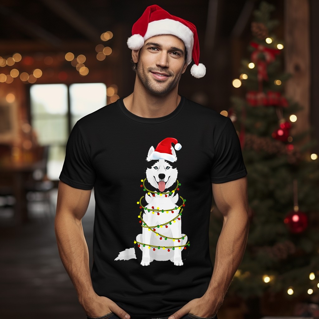 Get into the festive spirit with our Siberian Husky Santa Hat Christmas Lights Holiday T-Shirt! Perfect for dog lovers and holiday enthusiasts alike, this shirt features an adorable design that brings joy and cheer to any casual occasion. Whether you’re attending a holiday party, a family gathering, or simply enjoying a cozy day at home, this shirt is a must-have for spreading Christmas cheer. Plus, it’s fan-made and printed right here in the USA, making it a unique addition to your holiday wardrobe.