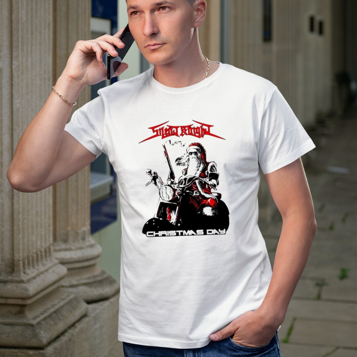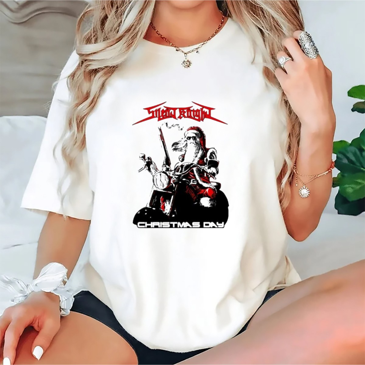 Embrace the holiday spirit with our Silent Knight Santa Riding Motorcycle Christmas Day T-Shirt! Perfect for motorcycle enthusiasts and festive souls alike, this fan-made design brings a unique twist to your Christmas celebrations. Whether you’re attending a themed event, enjoying a casual family gathering, or simply spreading cheer during the holiday season, this shirt is a fun and stylish choice. Made with care in the USA, it showcases a playful depiction of Santa, combining the joy of Christmas with a love for adventure.
