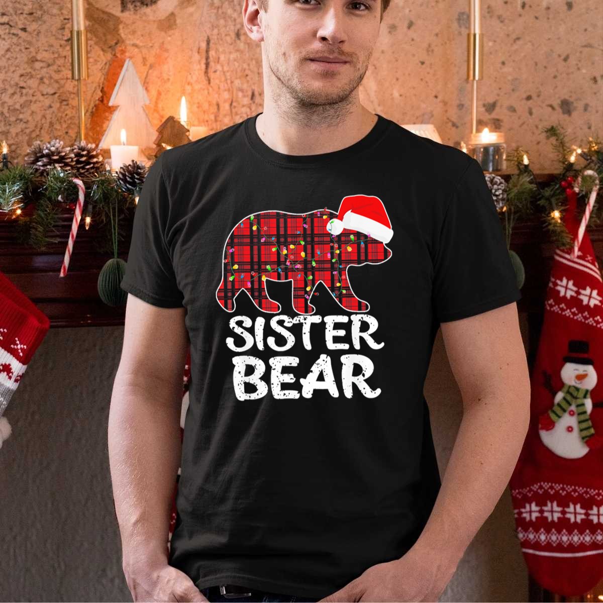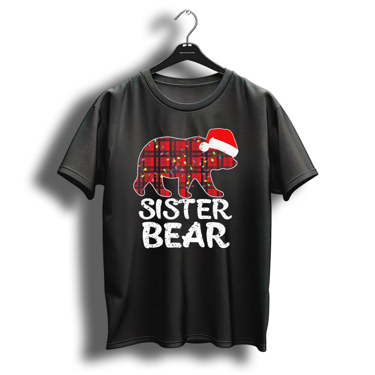 Be the first to review “Sister Bear Red Plaid Christmas Paj With Santa Hat And Lights T Shirt”