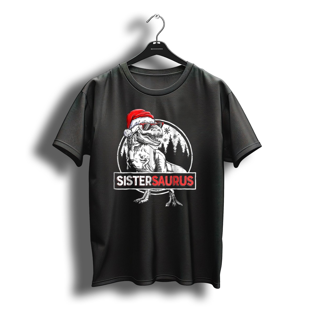Unleash your inner holiday spirit with our Sistersaurus Dinosaur Christmas Rex T-Shirt! Perfect for dino lovers and festive enthusiasts alike, this fun and quirky design features a charming dinosaur adorned with a Santa hat and stylish sunglasses, surrounded by whimsical snowflakes and a forest backdrop. Ideal for casual wear, themed events, or just spreading cheer during the holiday season, this shirt is sure to make you the life of the party while showcasing your unique personality. Made right here in the USA, it’s a fan-made design that will make you smile every time you wear it!