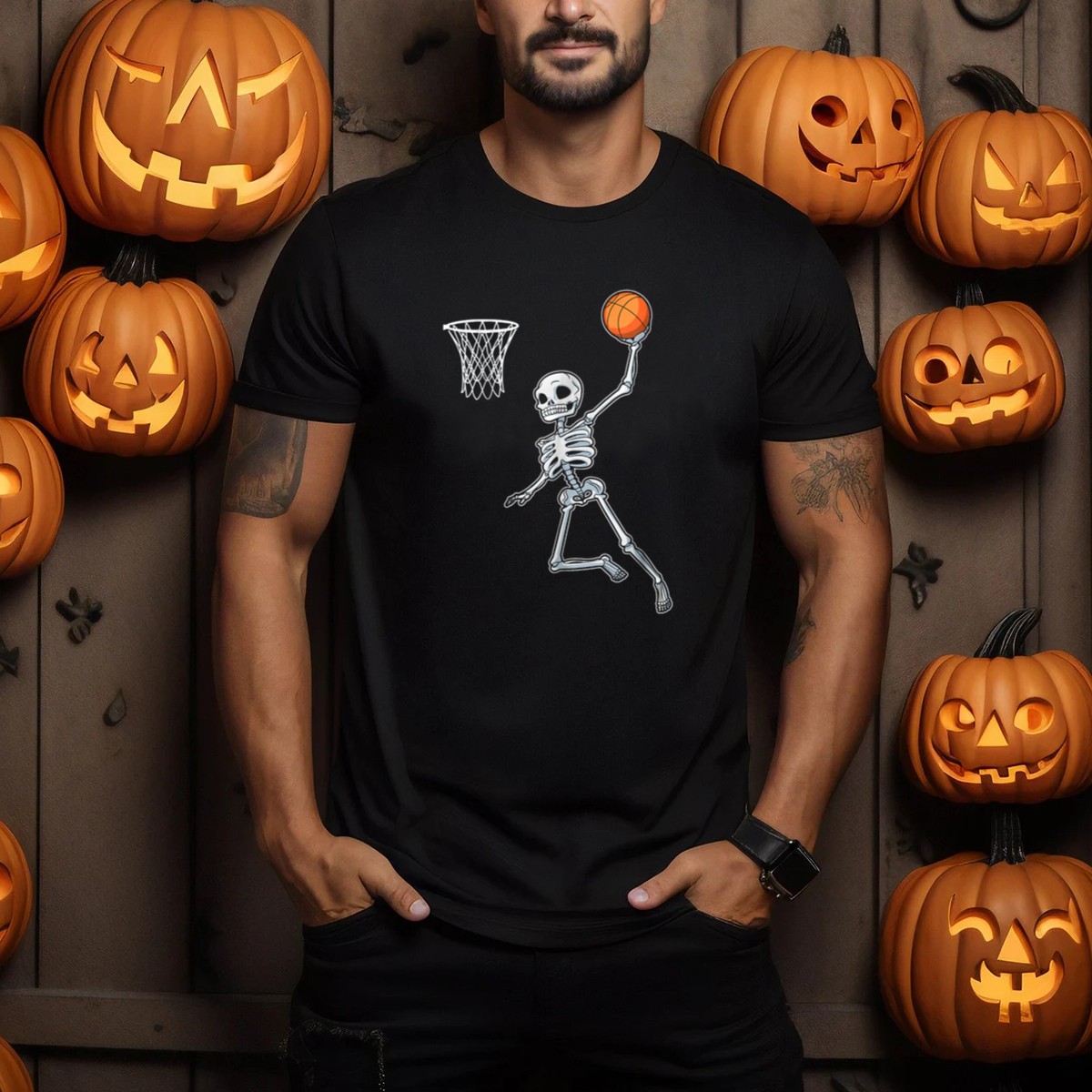 Get ready to elevate your Halloween style with our Skeleton Basketball Dunk T-Shirt! Perfect for sports enthusiasts and Halloween lovers alike, this fan-made design combines the thrill of basketball with a spooky twist. Whether you’re hitting a themed event, going out with friends, or just looking to add a unique piece to your casual wardrobe, this shirt is sure to turn heads and spark conversations. Made with care in the USA, it’s a must-have for anyone who loves to celebrate the fun side of the season.