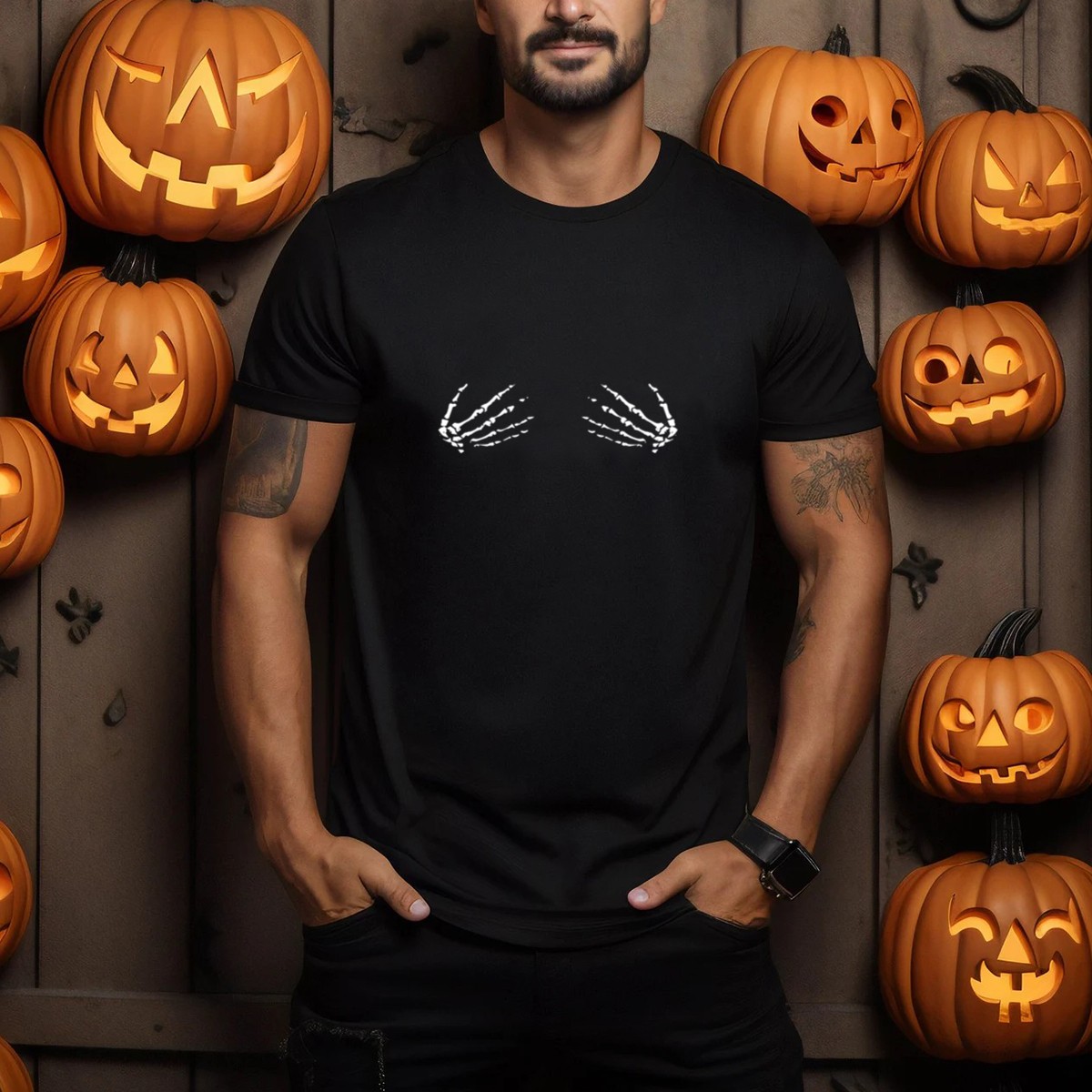 Get ready to elevate your Halloween festivities with our Skeleton Boob Hands Halloween Group Costume Top T-Shirt! Perfect for friends who love to coordinate their costumes, this fun and quirky design is sure to bring laughter and charm to any themed event or casual gathering. Made for comfort and style, this shirt is your go-to choice for all-season wear, whether you’re hitting a Halloween party or just hanging out with friends.