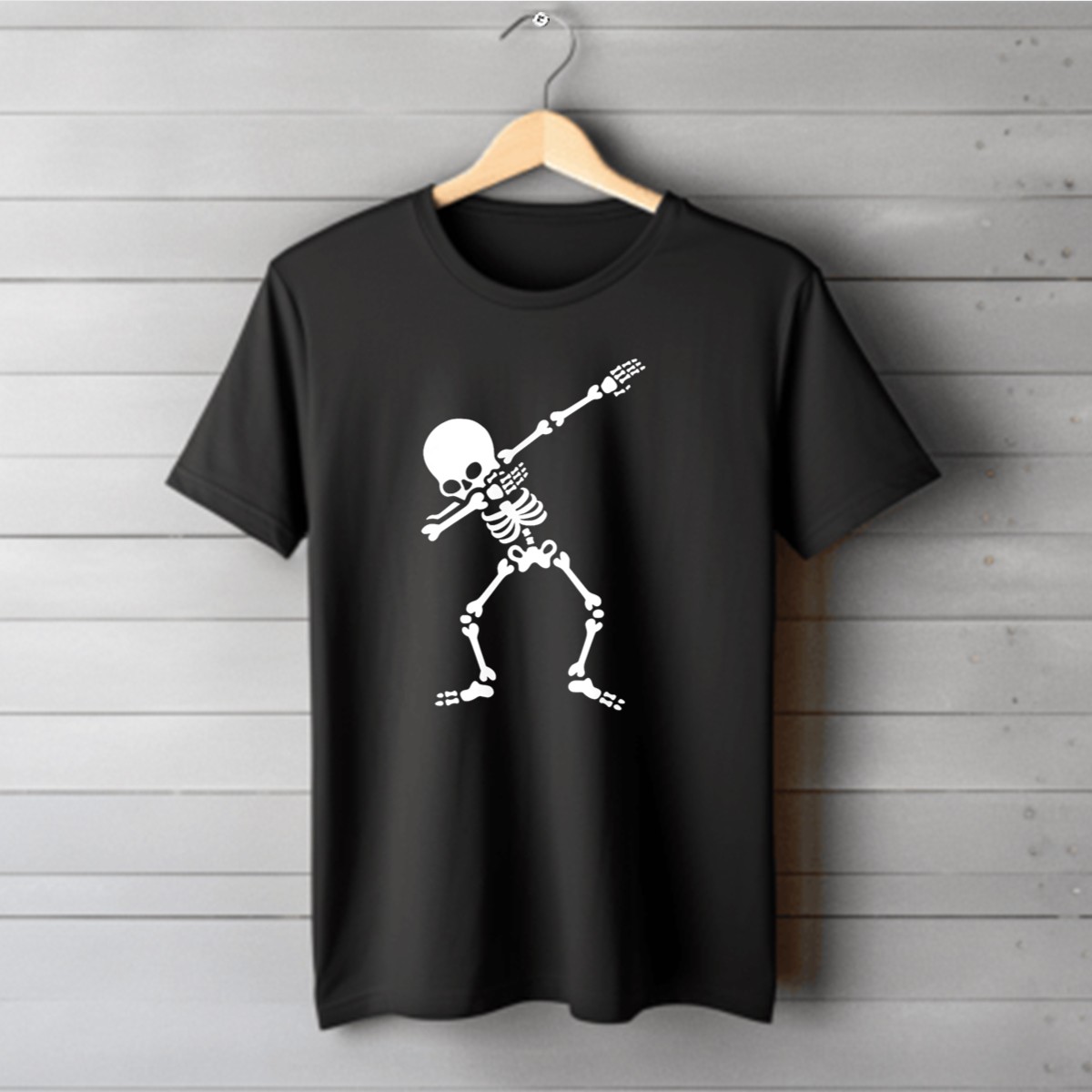 Embrace the spirit of Halloween with our Skeleton Dab Dance T-Shirt, perfect for those who love to combine fun and festivities! This fan-made design showcases a playful skeleton dabbing, making it an ideal choice for themed events, casual outings, or simply adding a touch of humor to your daily wear. Crafted for comfort and style, this shirt is a must-have for anyone looking to celebrate the spooky season with a unique flair.