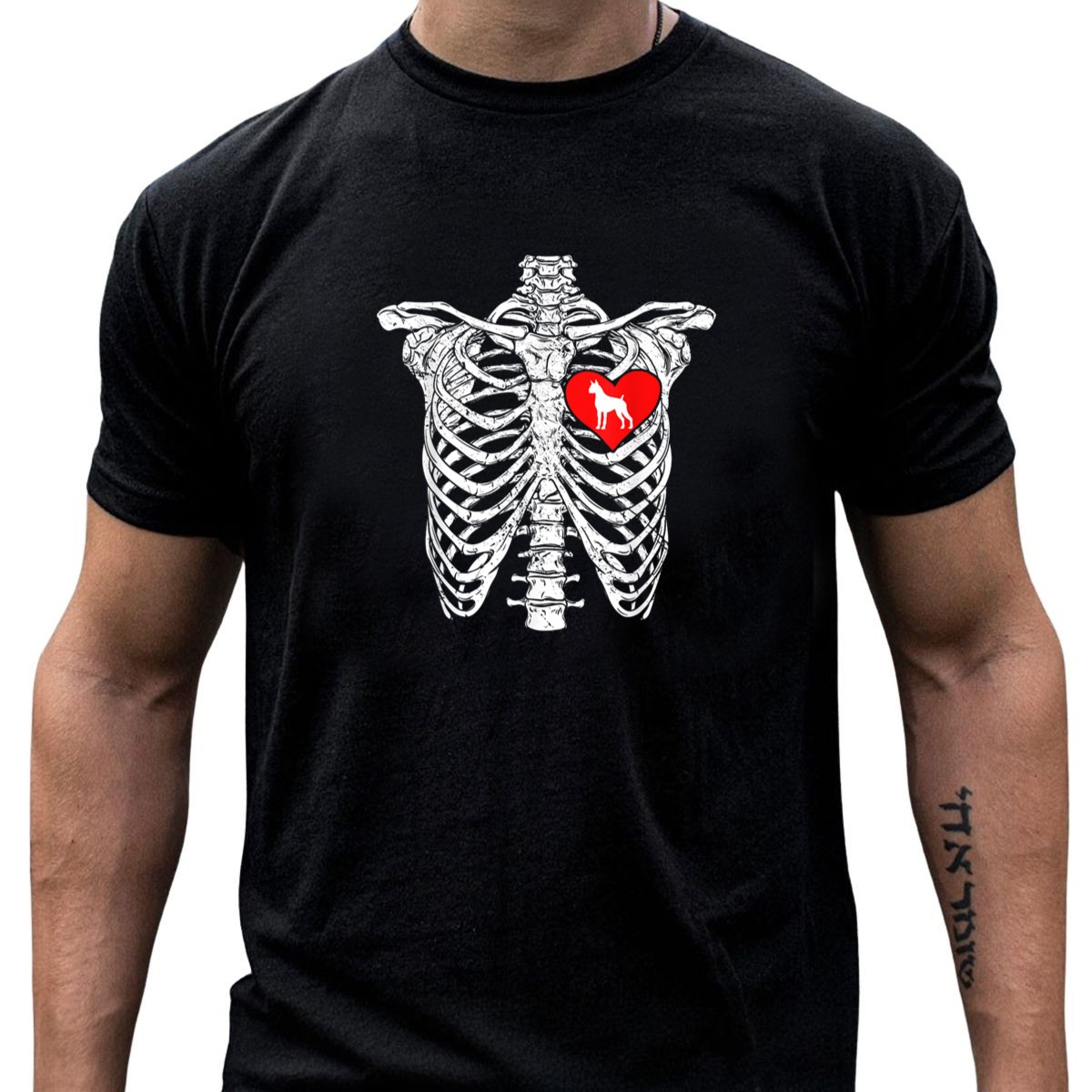 Be the first to review “Skeleton Rib Cage Heart Boxer Dog Halloween T-Shirt”