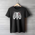 Be the first to review “Skeleton Ribcage With Mountain Climbing Heart Halloween T-Shirt”