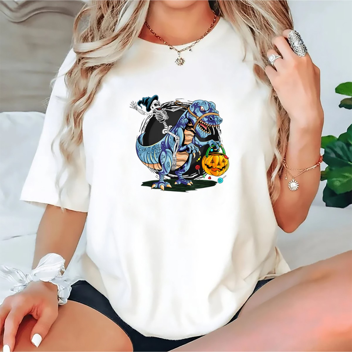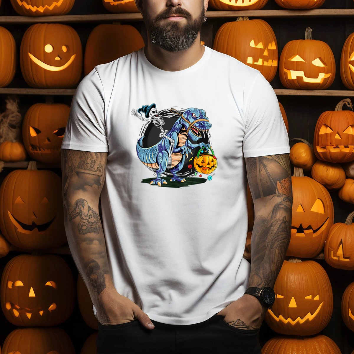 Unleash your inner monster this Halloween with our Skeleton Riding Dinosaur T-Shirt! Perfect for those who love to celebrate the spooky season in style, this fan-made design combines playful whimsy with a touch of fright. Ideal for casual outings, themed events, or everyday wear, this shirt promises to turn heads and spark conversations wherever you go. Made with care in the USA, it’s a fun addition to your all-season wardrobe!