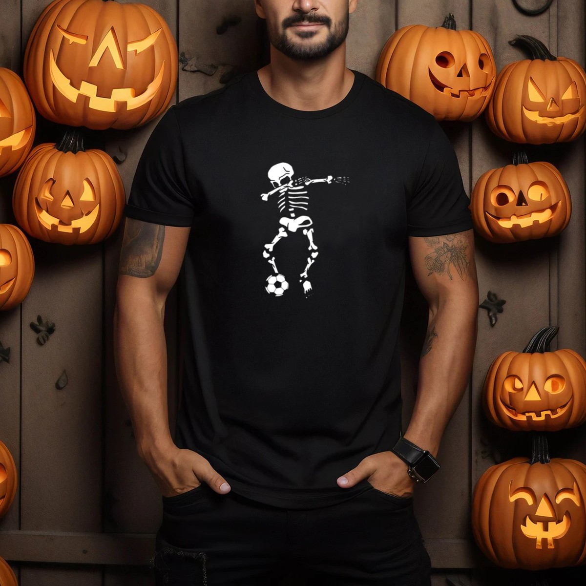 Get ready to score big this Halloween with our Skeleton Soccer Dab T-Shirt! Perfect for soccer enthusiasts and those who love to celebrate the spooky season, this fan-made design features a playful skeleton dabbing with a soccer ball, bringing a fun twist to your casual wear. Ideal for themed events, daily outings, or just lounging around, this shirt combines comfort and style, making it a must-have for any festive wardrobe.