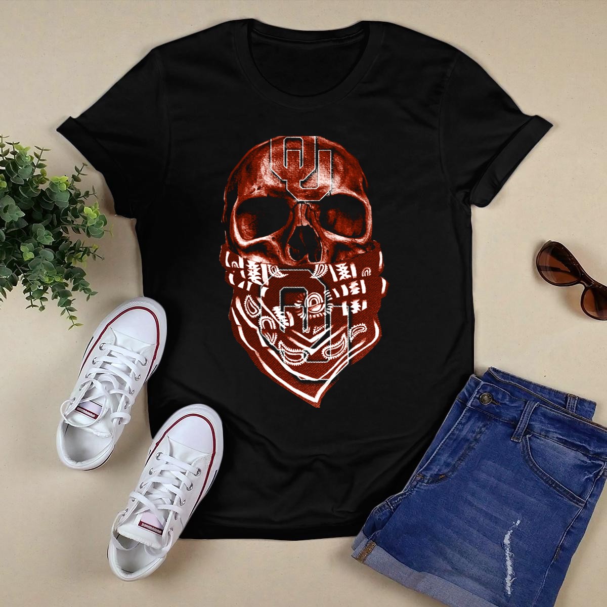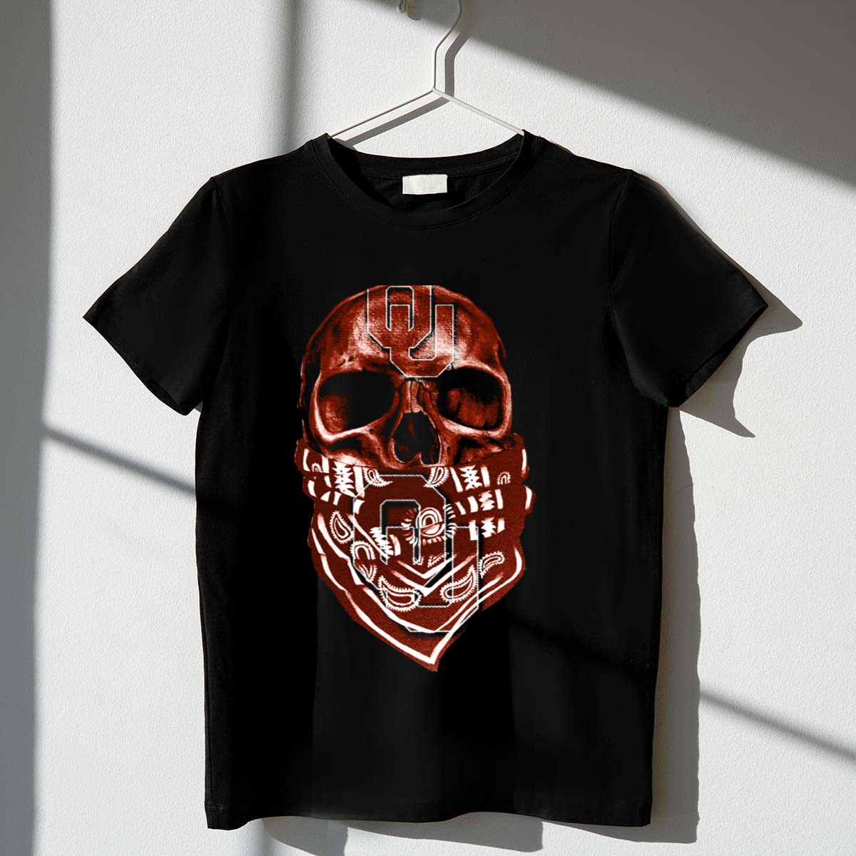 Show your pride for the Oklahoma Sooners with this eye-catching Skull OU Logo Bandana T-Shirt, perfect for fans who want to stand out at games, themed events, or during casual outings. Made from 100% cotton, this T-shirt combines a classic fit with a unique fan-made design, ensuring you not only look great but feel comfortable too. Printed in the USA, it’s an ideal choice for any season, making it a must-have addition to your wardrobe.
