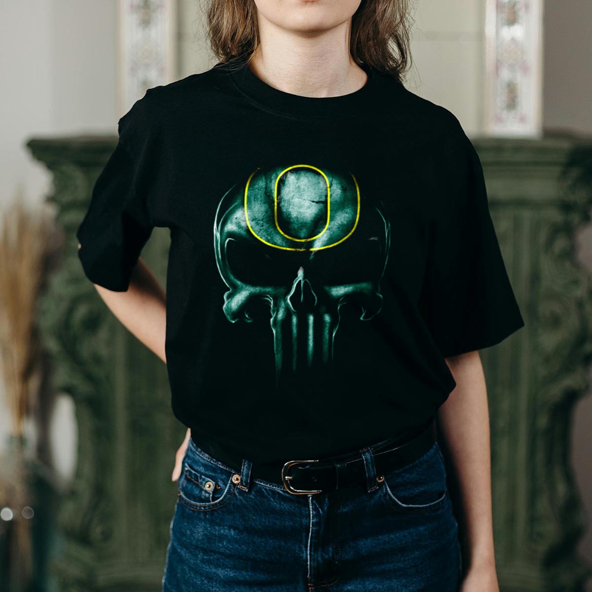Show your team spirit with our Skull Oregon Ducks Logo Dark Green T-Shirt, a must-have for any dedicated fan! Perfect for game days, casual outings, or themed events, this shirt combines comfort and style with a bold graphic design that showcases your love for the Oregon Ducks. Made for all-season wear, it’s the ideal choice for cheering on your team while looking effortlessly cool.