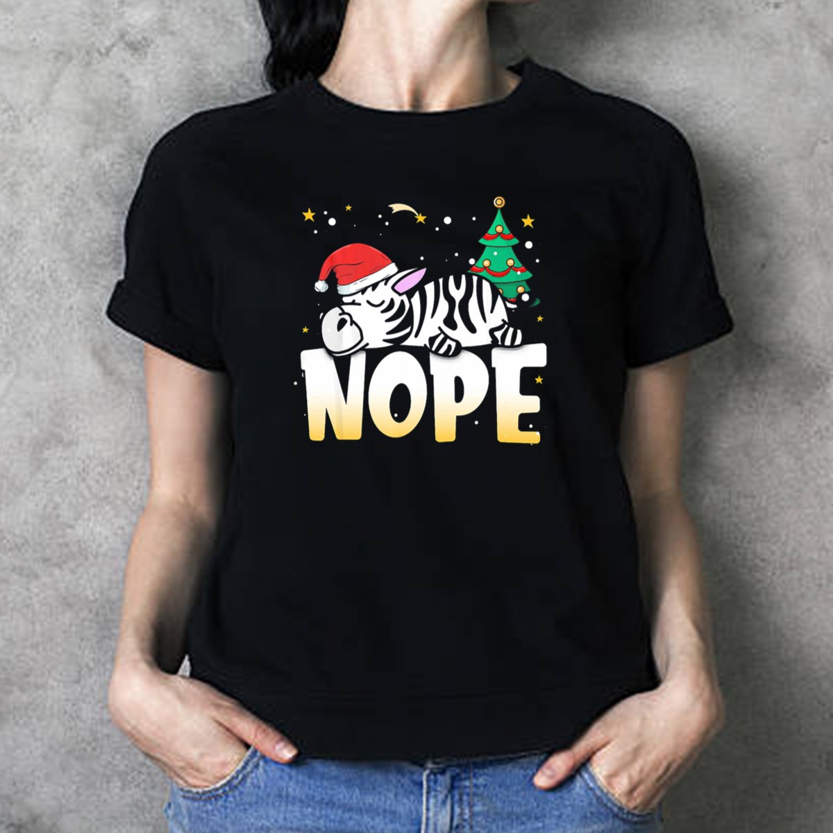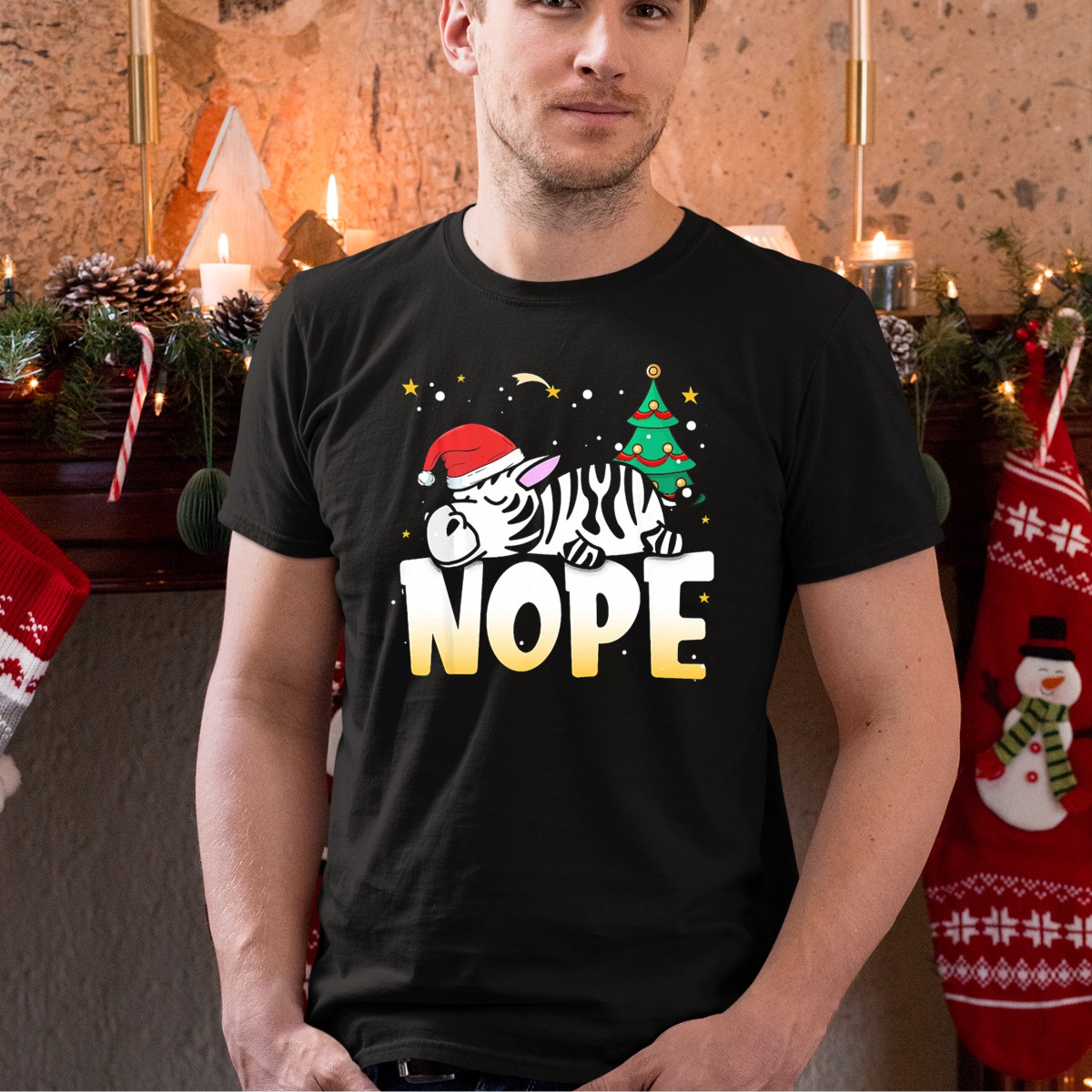 Get into the festive spirit with our Sleeping Christmas Zebra Nope Santa Hat Tree T-Shirt! Perfect for animal lovers and holiday enthusiasts alike, this fun and quirky design brings a playful twist to your seasonal wardrobe. Ideal for casual gatherings, themed events, or simply lounging around at home, this shirt is sure to be a conversation starter and a favorite addition to your all-season collection.