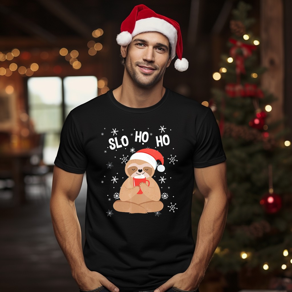 Get ready to spread some holiday cheer with our Slo Ho Ho Merry Slothmas Christmas Sloth Santa Hat T-Shirt! Perfect for sloth lovers and anyone looking to add a fun twist to their festive wardrobe, this shirt is ideal for casual gatherings, themed events, or simply lounging around during the holiday season. The unique fan-made design showcases a playful sloth in a Santa hat, making it a delightful addition to your all-season collection!