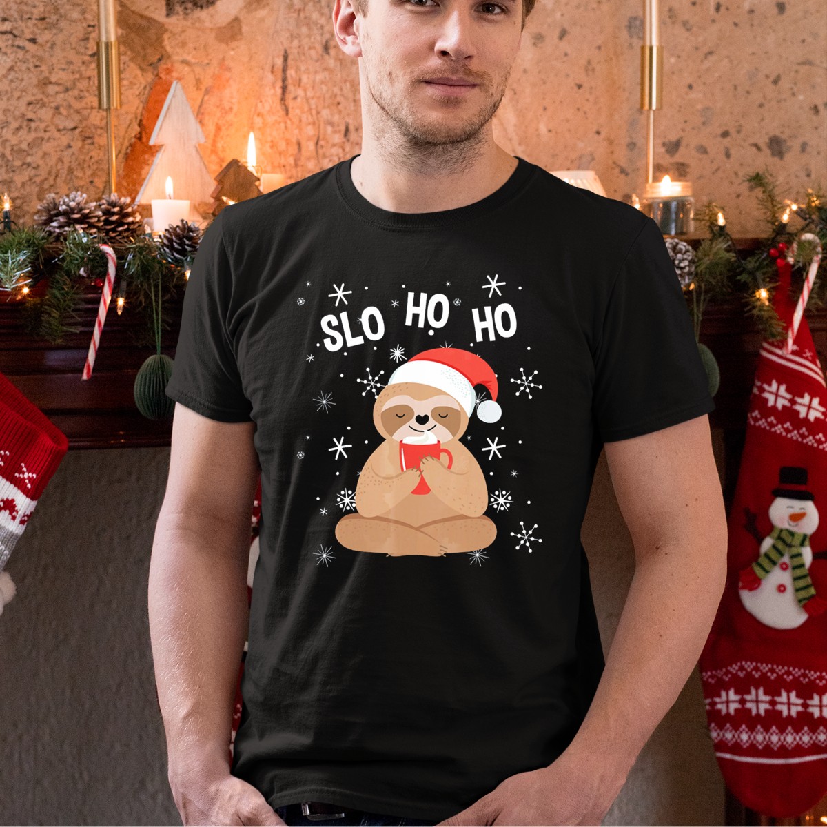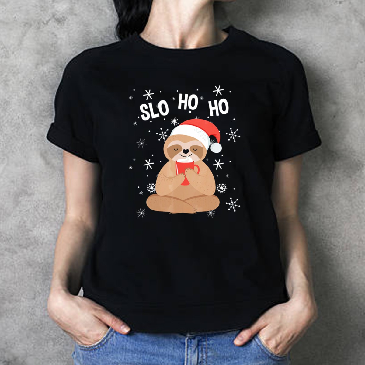Be the first to review “Slo Ho Ho Merry Slothmas Christmas Sloth Santa Hat T-Shirt”