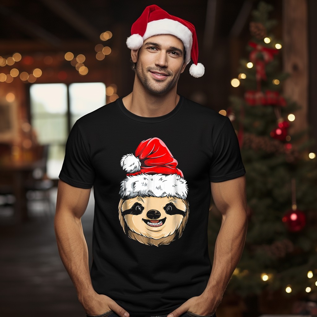 Get into the festive spirit with our Sloth Santa Christmas Hat Cheerful Face T-Shirt! Perfect for animal lovers and holiday enthusiasts alike, this whimsical design brings joy and laughter to any casual gathering or themed event. Whether you’re attending a holiday party, lounging at home, or simply spreading cheer throughout the day, this shirt combines comfort and style, making it a delightful addition to your all-season wardrobe. Plus, it’s fan-made and printed right here in the USA!