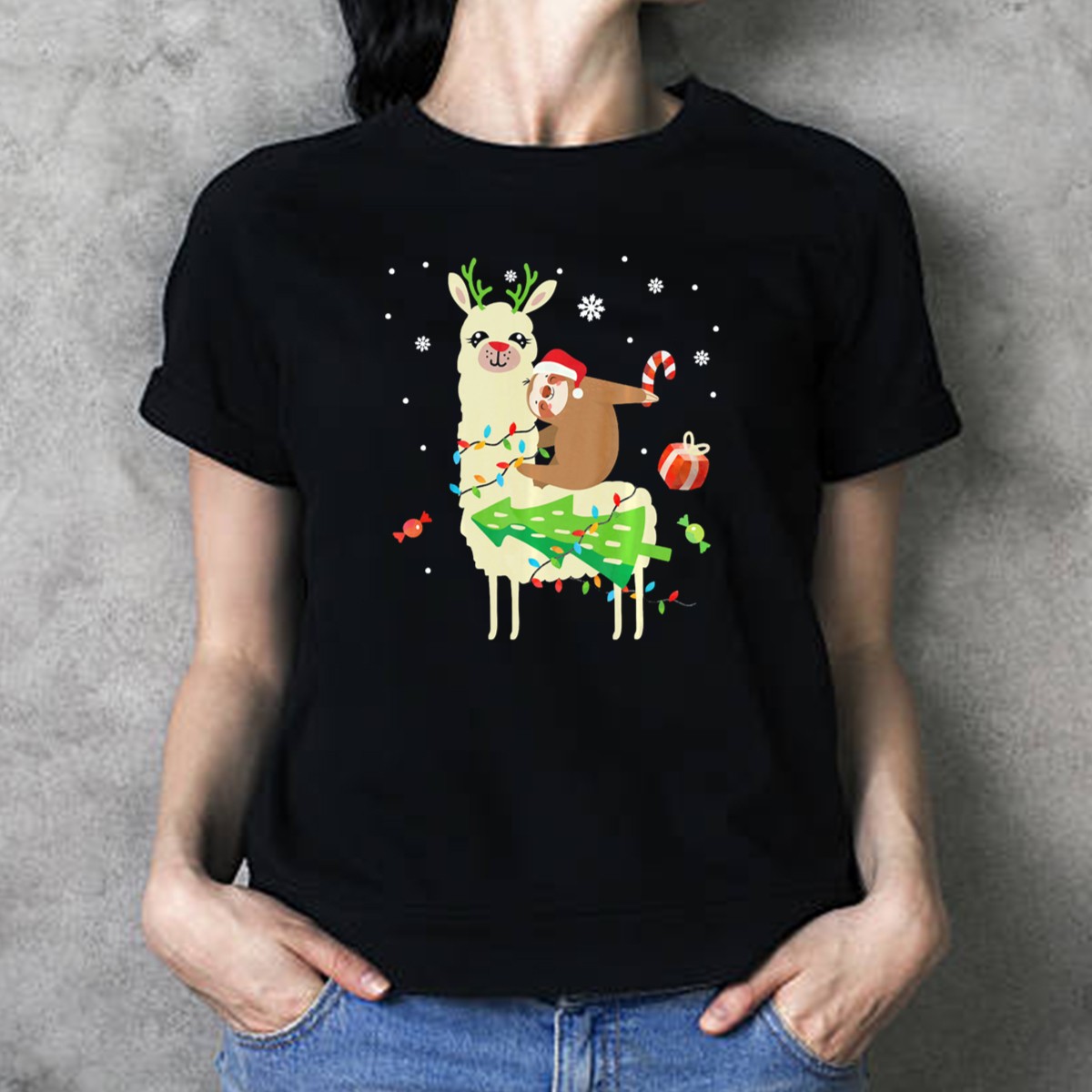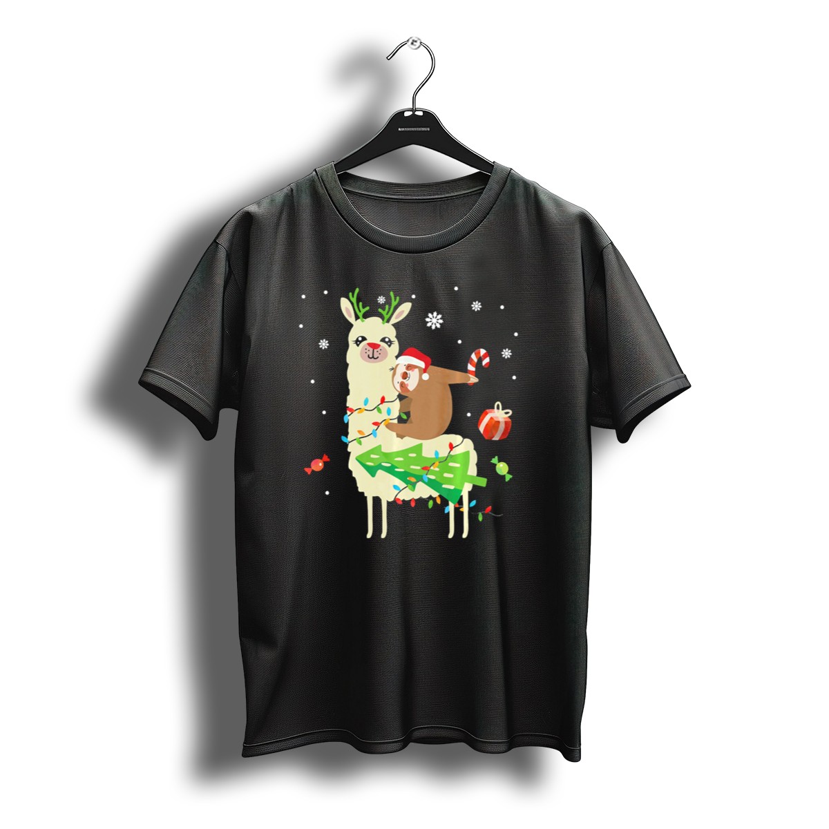 Get ready to spread some holiday cheer with our Sloth Santa Riding A Llama With Candy Cane And Christmas Lights T-Shirt! This playful and whimsical design is perfect for sloth lovers and anyone looking to add a fun twist to their festive wardrobe. Ideal for casual wear, themed events, or just lounging around during the holiday season, this shirt is sure to be a conversation starter wherever you go. Made in the USA, it combines comfort and creativity for a unique addition to your collection.