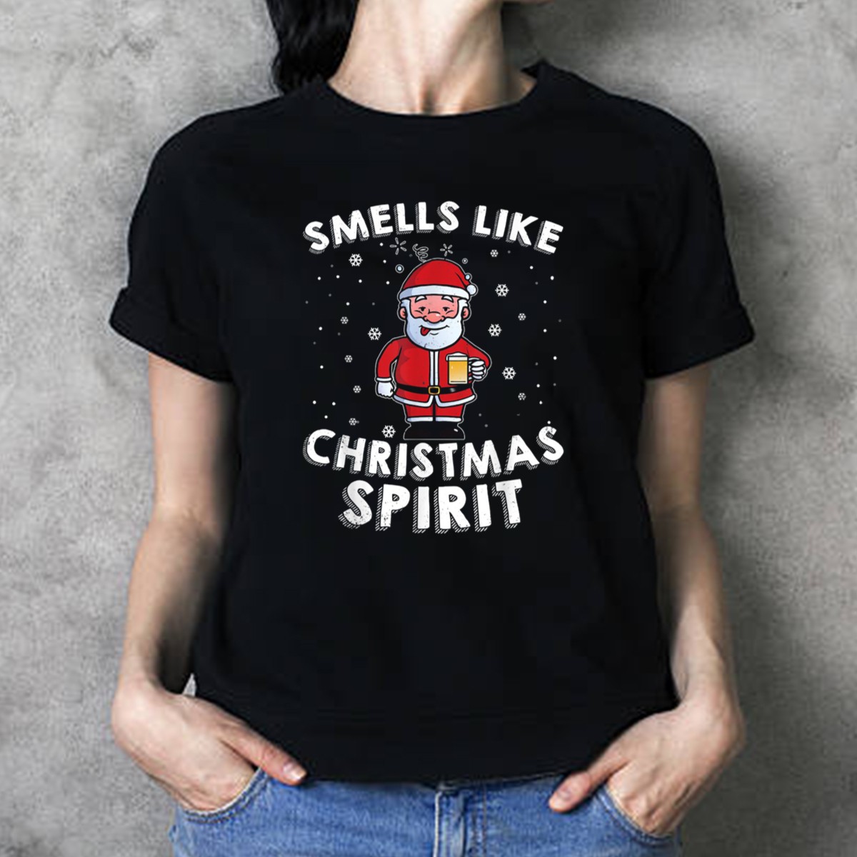 Embrace the festive cheer with our “Smells Like Christmas Spirit” T-shirt featuring a whimsical design of a cheerful Santa holding a beer, surrounded by snowflakes. Perfect for holiday parties, family gatherings, or just spreading seasonal joy, this shirt is ideal for anyone looking to showcase their love for Christmas in a fun and lighthearted way. Crafted for comfort and style, this fan-made design is a must-have for your casual wear collection this holiday season!