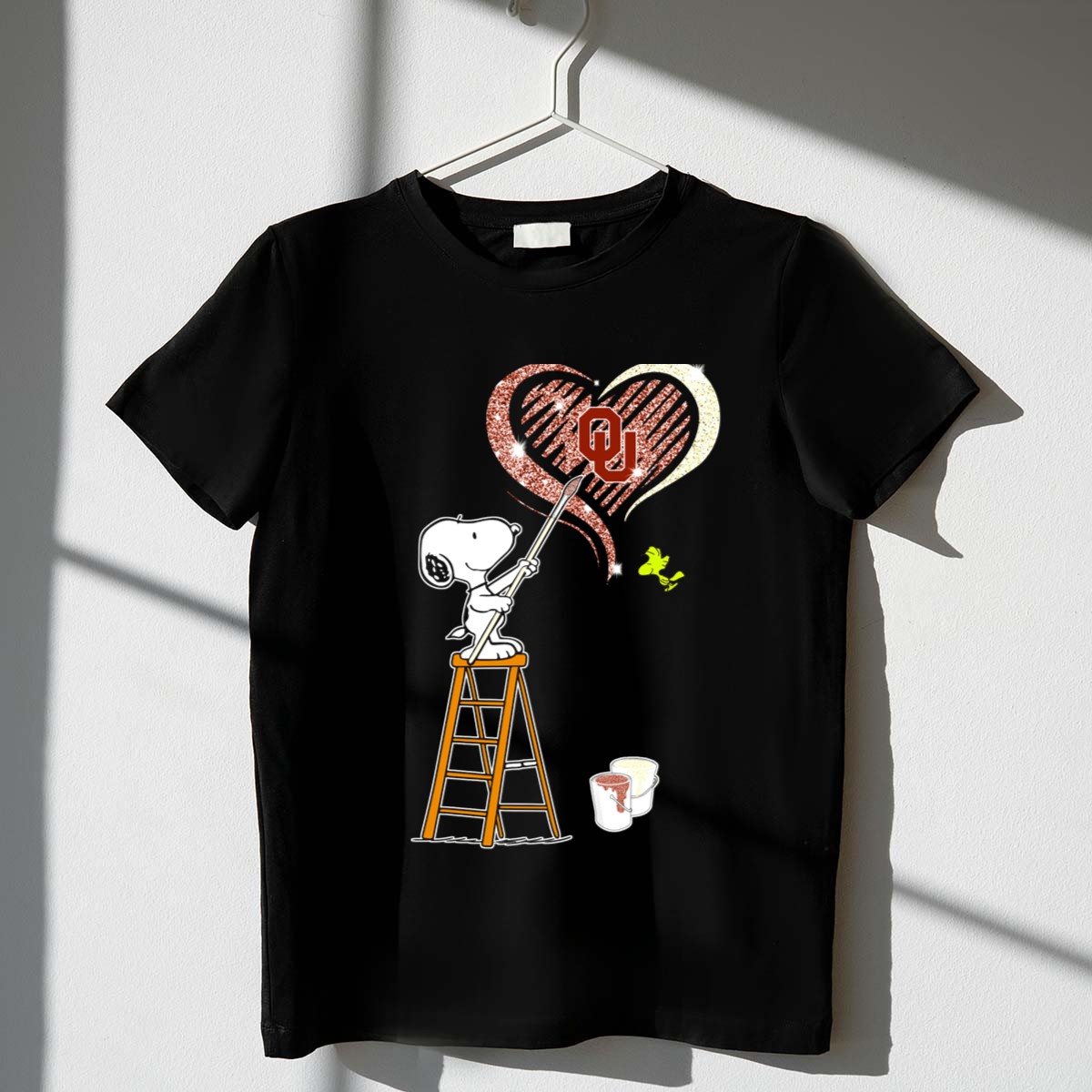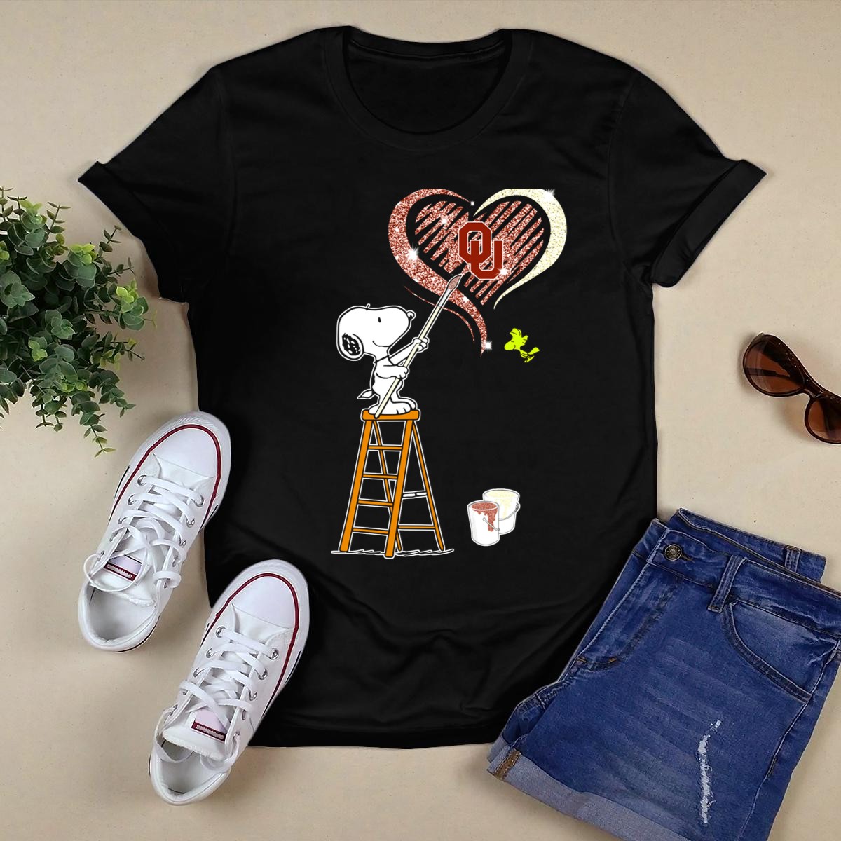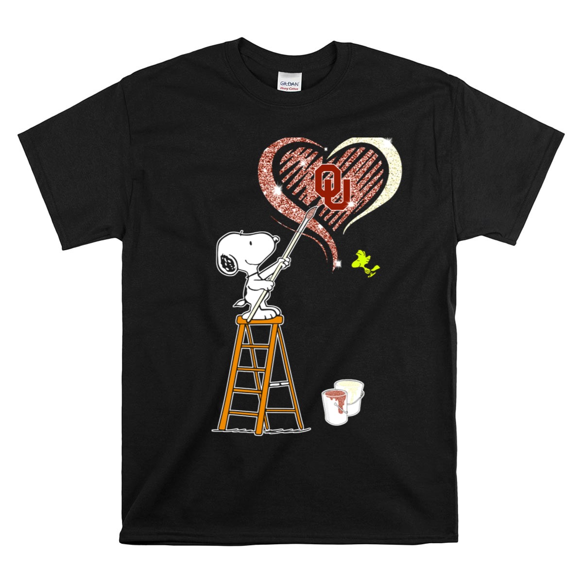 Snoopy Oklahoma Sooners Heart Painting Woodstock T-Shirt