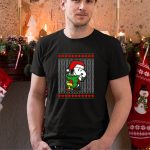Snoopy Ugly Christmas Sweater With Santa Hat And Woodstock T-Shirt