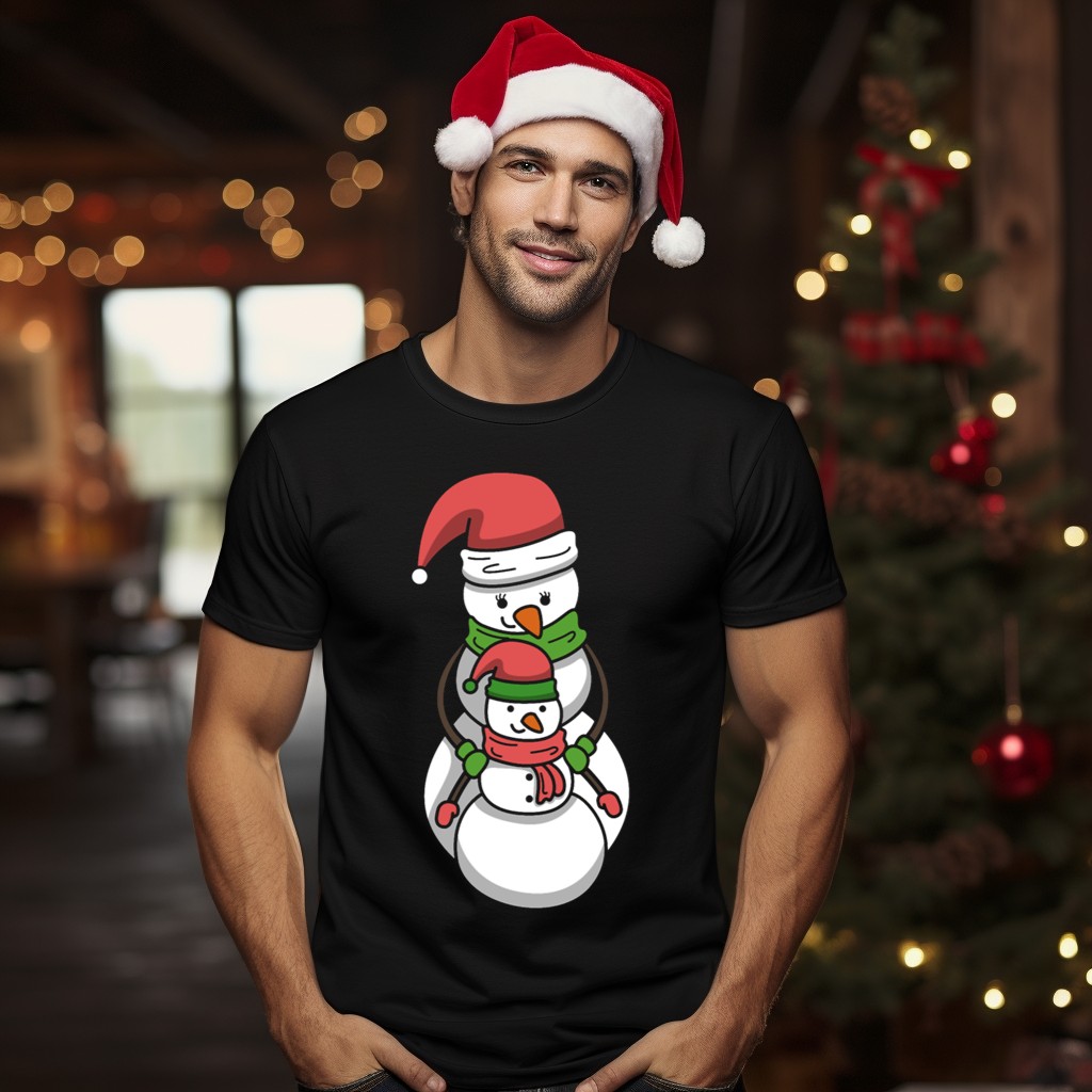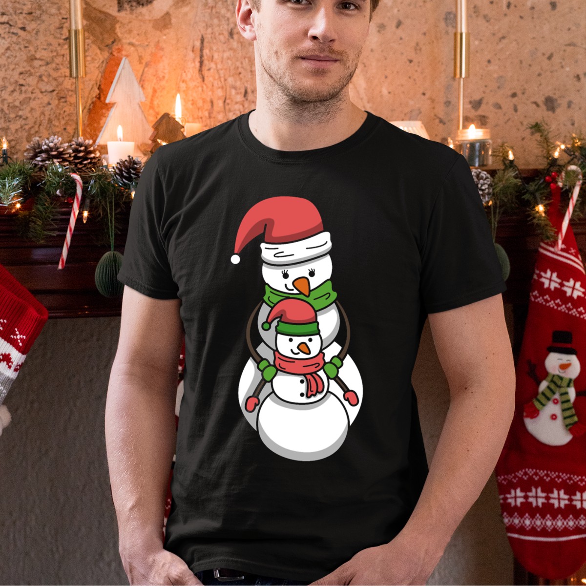 Celebrate the joy of the holiday season with our Snowman Mother and Child T-Shirt! Perfect for families looking to spread festive cheer, this charming graphic tee features an adorable design of a snowman family adorned with Santa hats and scarves. Ideal for casual outings, holiday gatherings, or themed events, this shirt brings warmth and joy to your winter wardrobe. Made from high-quality materials, it promises both comfort and style, making it a unique addition to your seasonal attire.